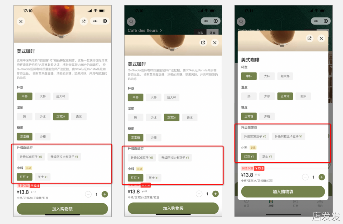 适用多个加料分类:支持添加多个加料分类(如:升级豆子,小料)