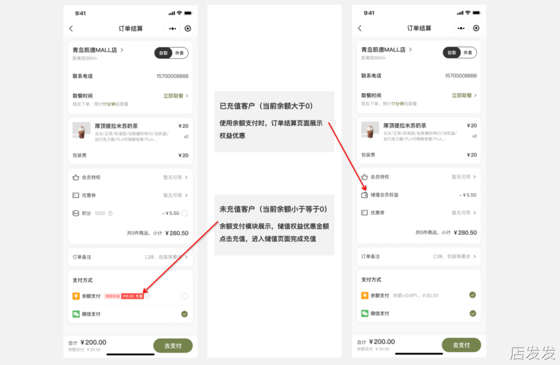 下单页面:在小程序下单页面,展示储值权益可优惠金额;