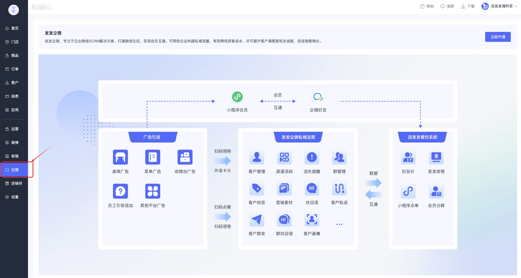 「发发企微」是企业微信SCRM解决方案,打通微信生态,实现会员互通。