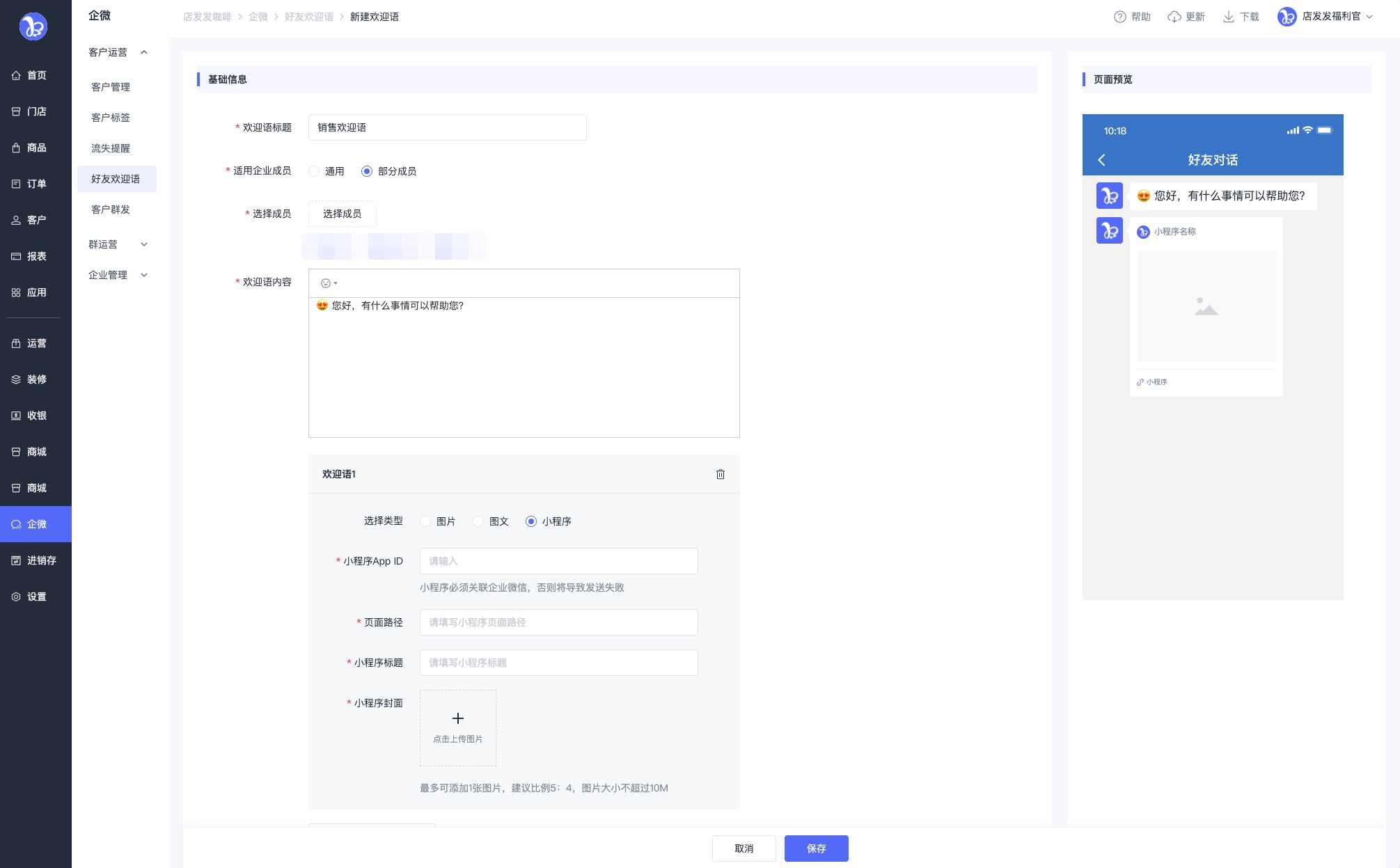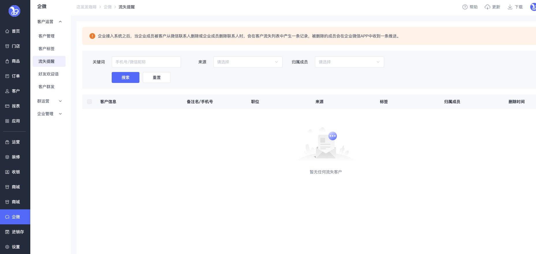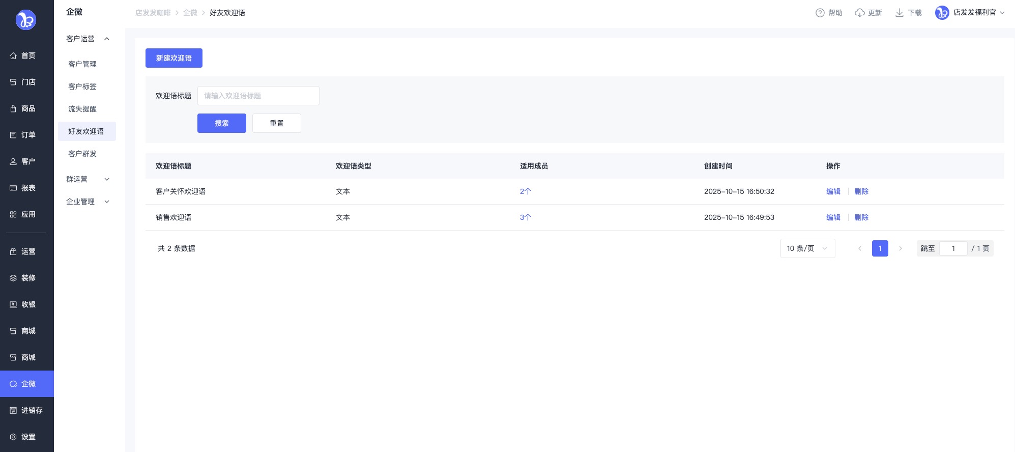 管理企微客户信息,配置客户标签,流失提醒,好友欢迎语,客户群发;