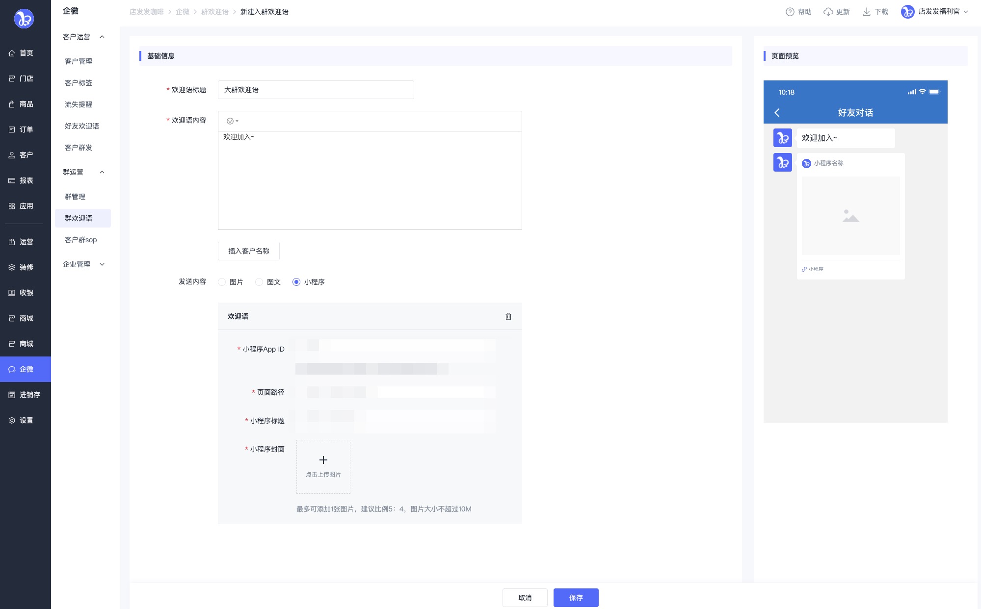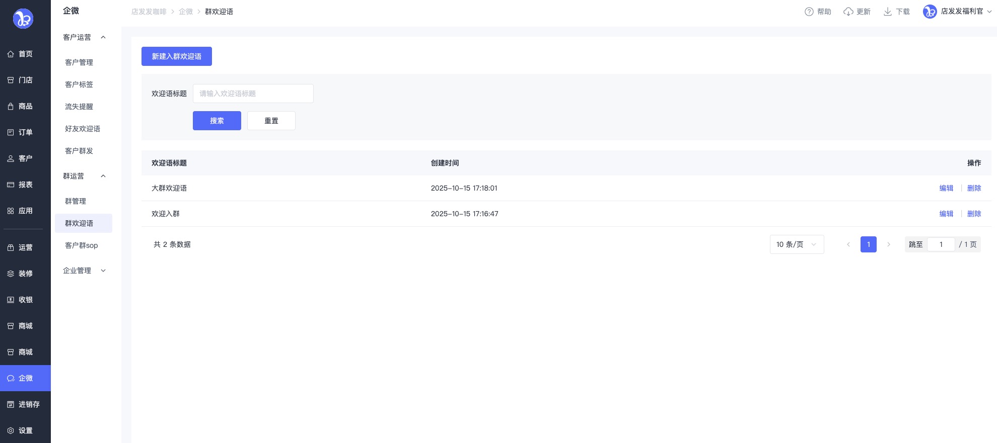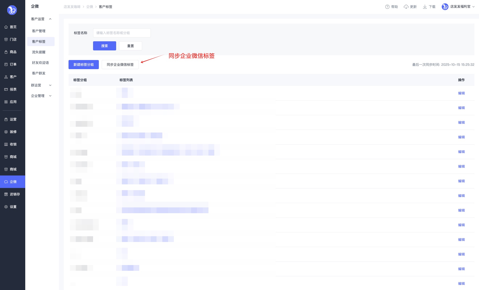 管理企微客户信息,配置客户标签,流失提醒,好友欢迎语,客户群发;