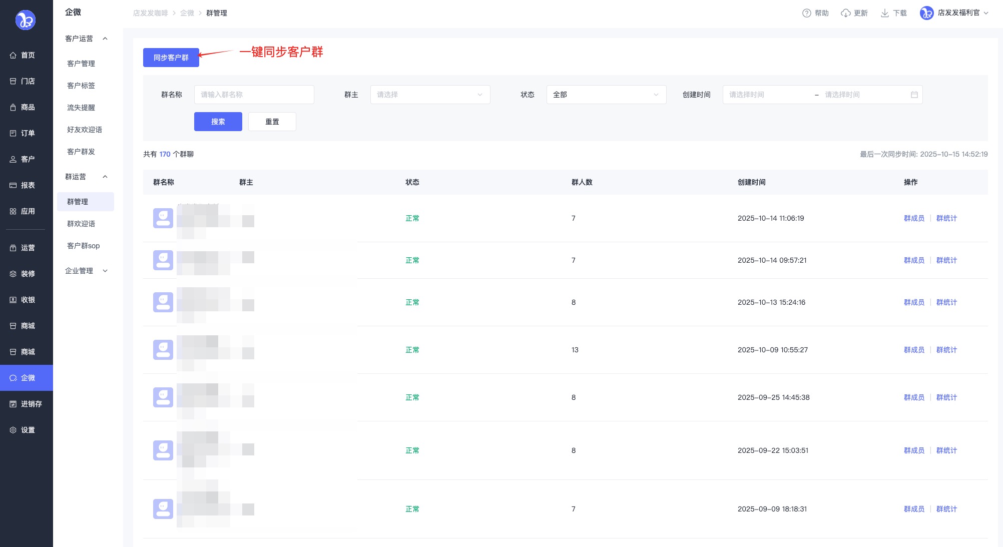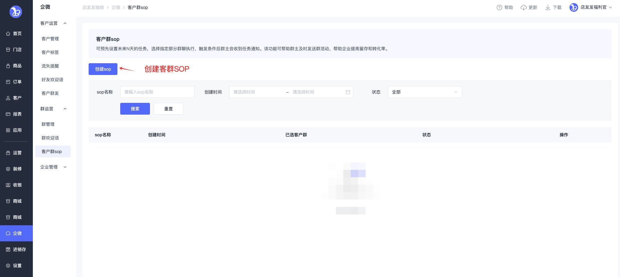 可一键同步企微群信息,管理企微群、设置群欢迎语,并进行客户群SOP;