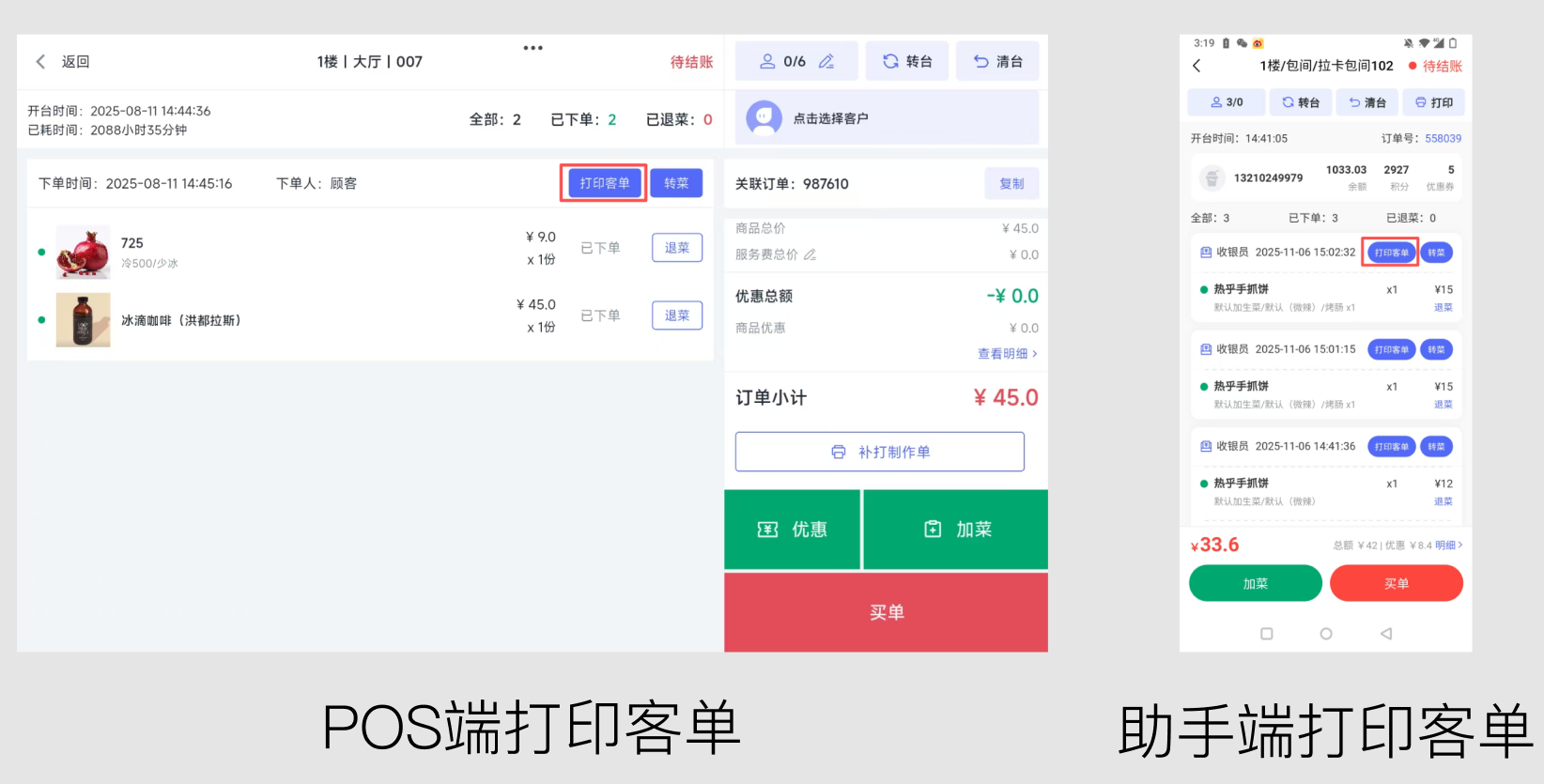 1.1先吃后付场景下,顾客下单后或加菜后可打印堂食客单小票,供顾客核对所点菜品、数量、特殊要求(如忌口、做法)是否准确,避免点餐失误,减少退换菜纠纷。