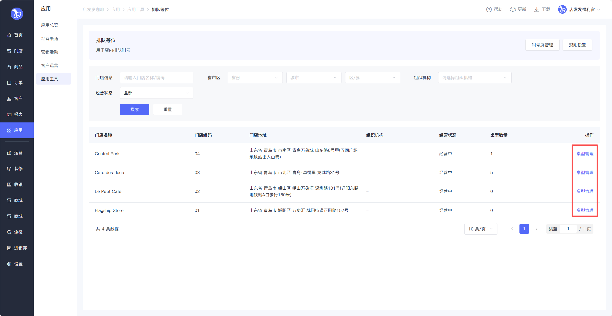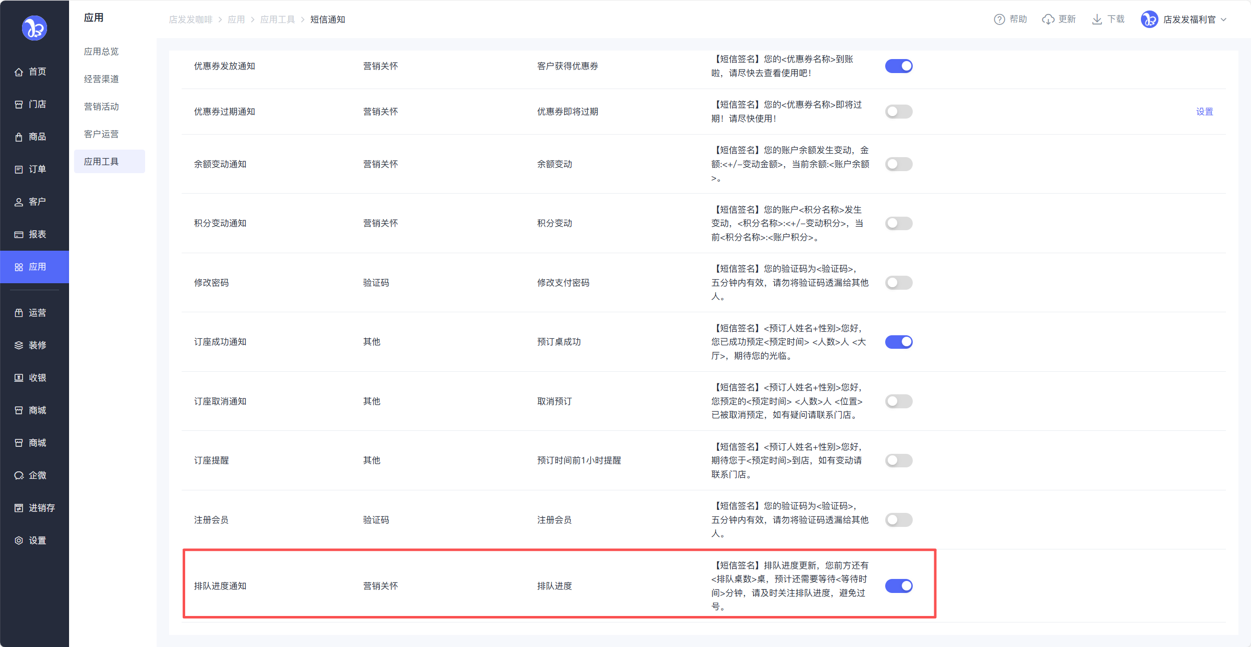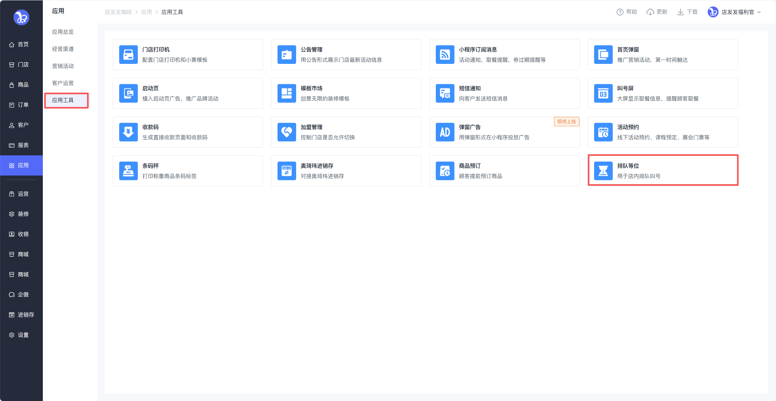 路径:品牌后台-应用-应用工具-排队等位