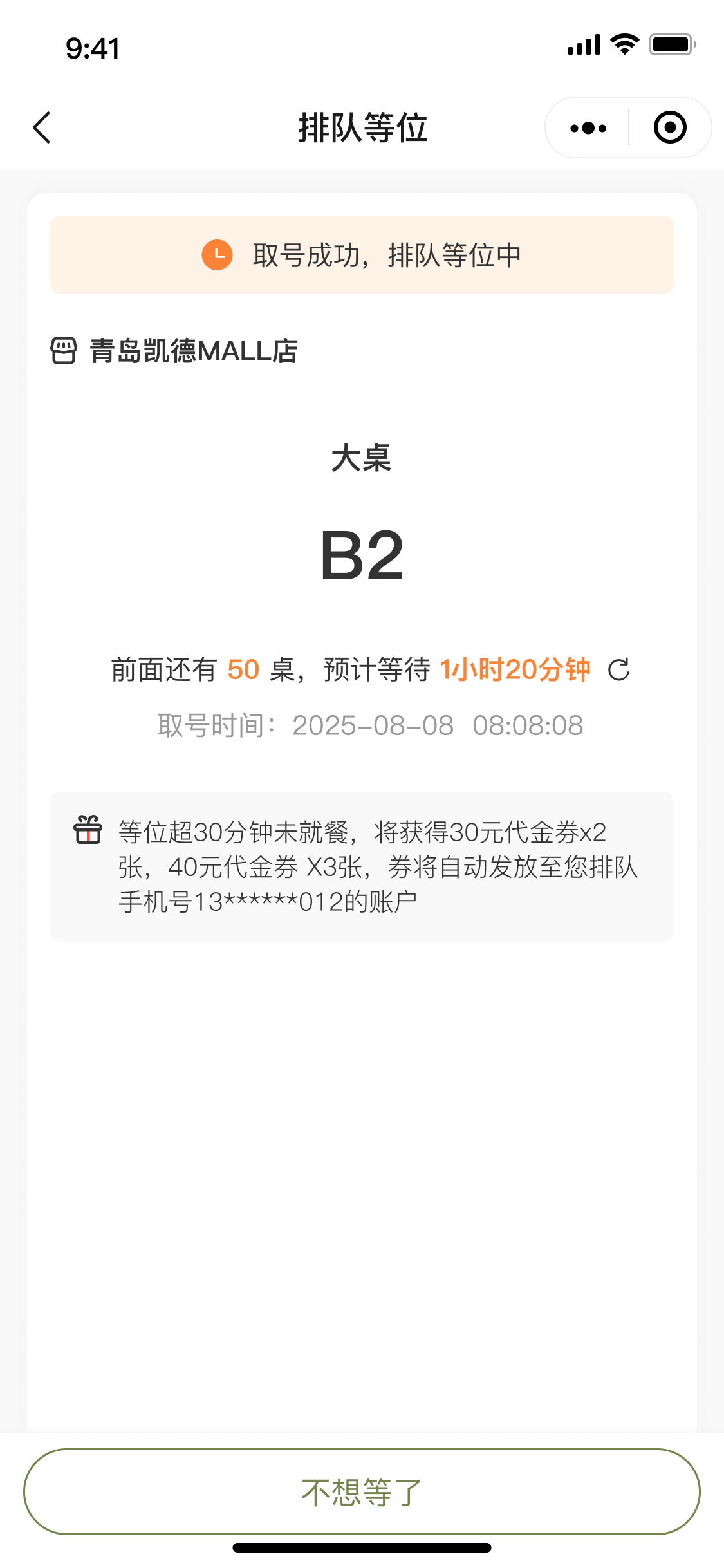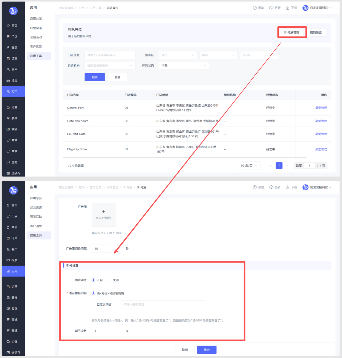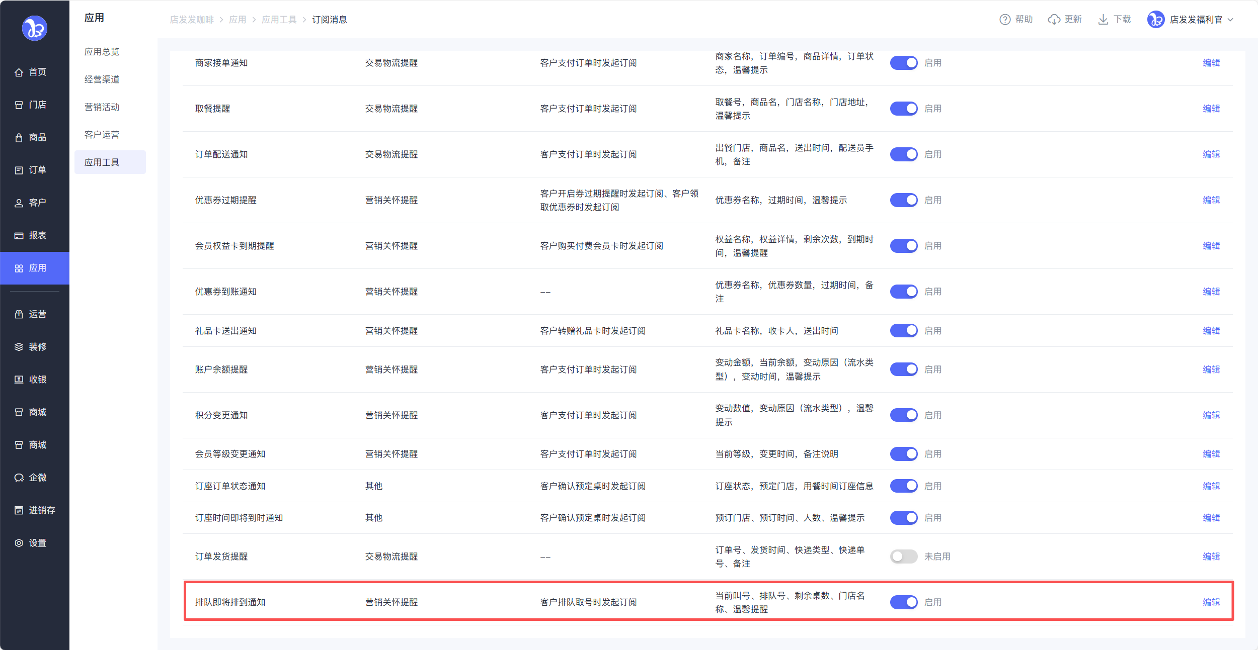 路径:品牌后台-应用-应用工具-排队等位