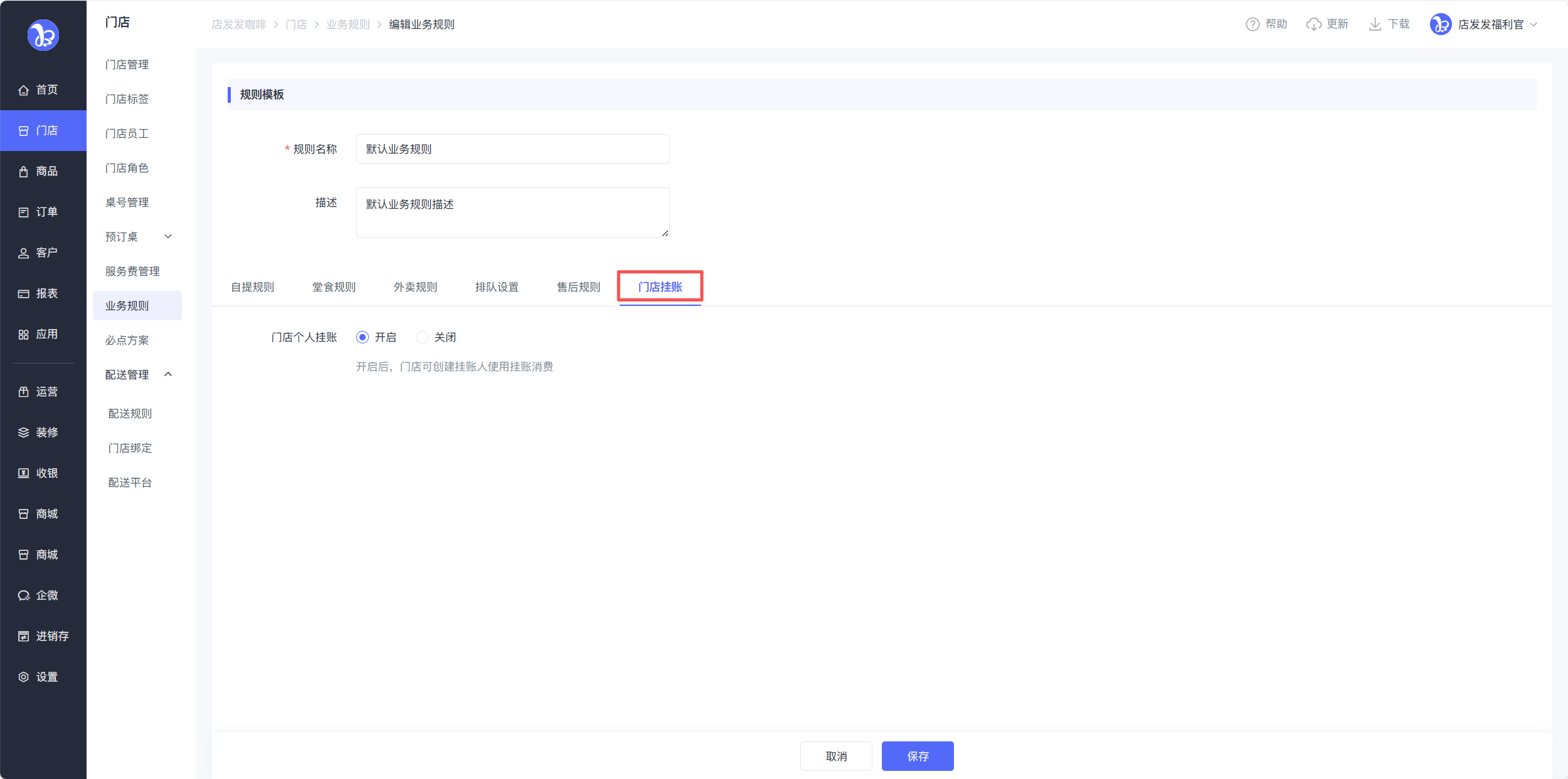 注:查看挂账收款订单和退款、查看及导出挂账报表需要配置员工权限,请根据实际经营需求合理配置