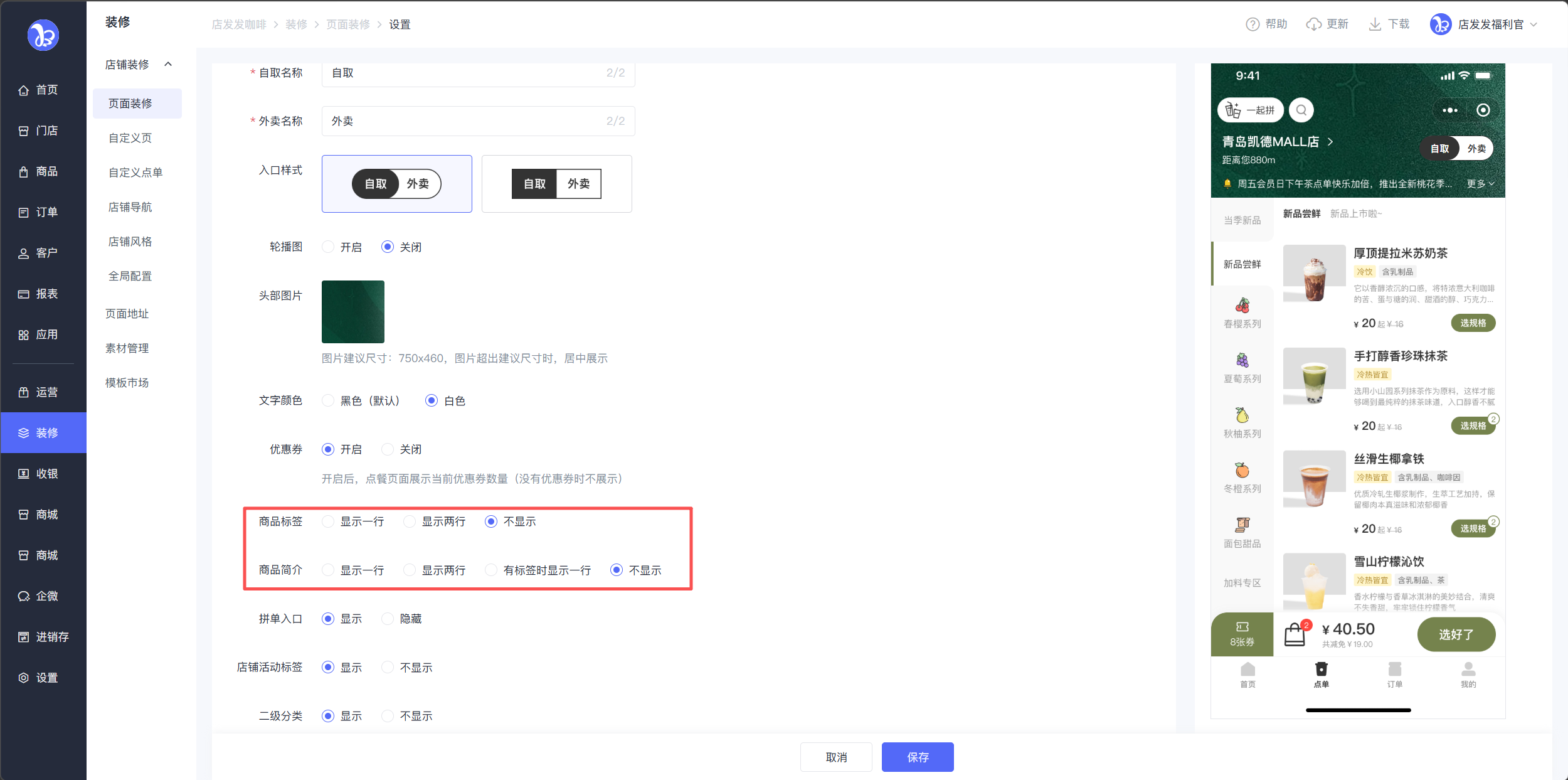 5.1点餐页新增大图卡片样式,卡片文字的颜色及底色、卡片的圆角皆可自定义。