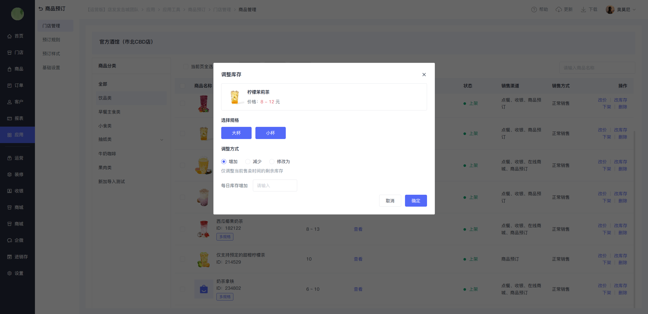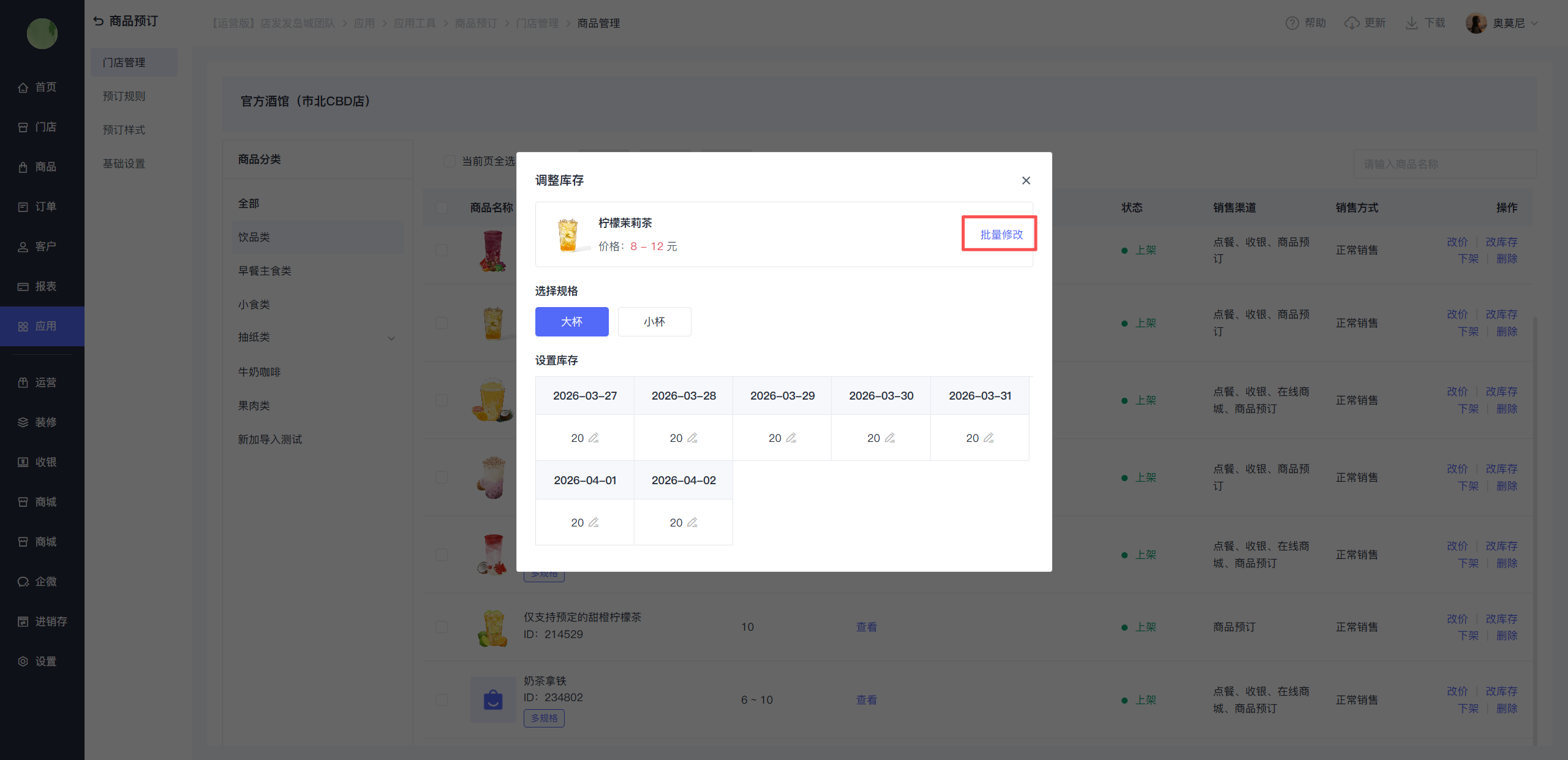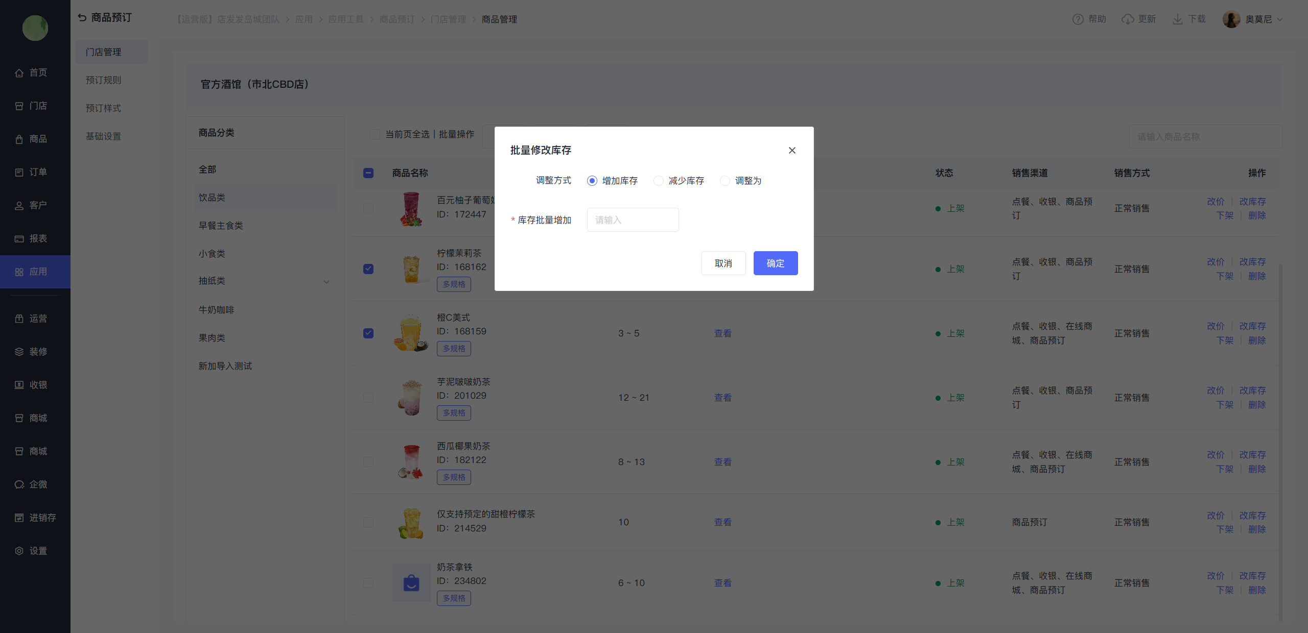 品牌后台-应用-应用工具-商品预订-门店管理-商品管理