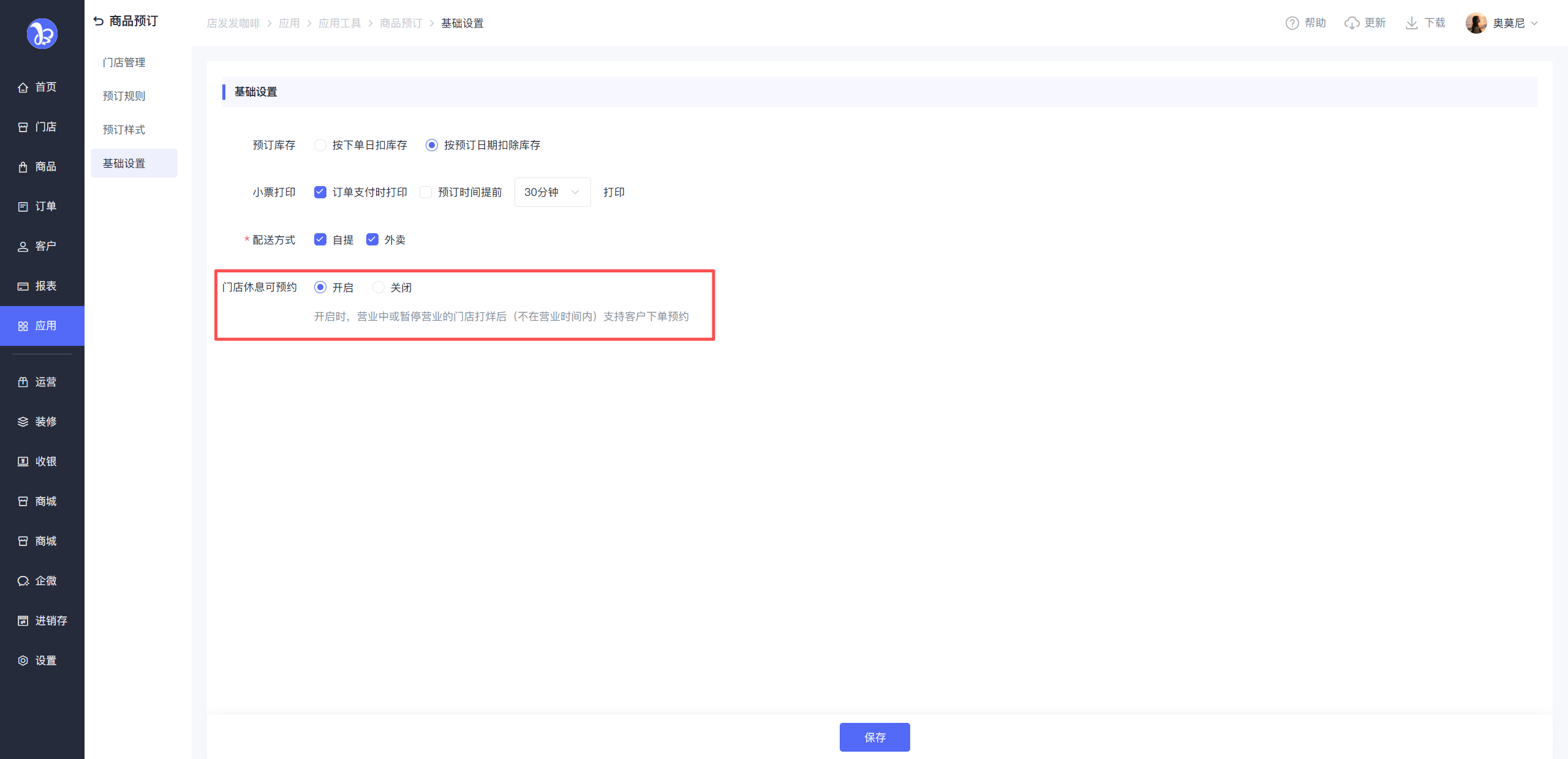 路径:品牌后台-应用-应用工具-商品预订-基础设置