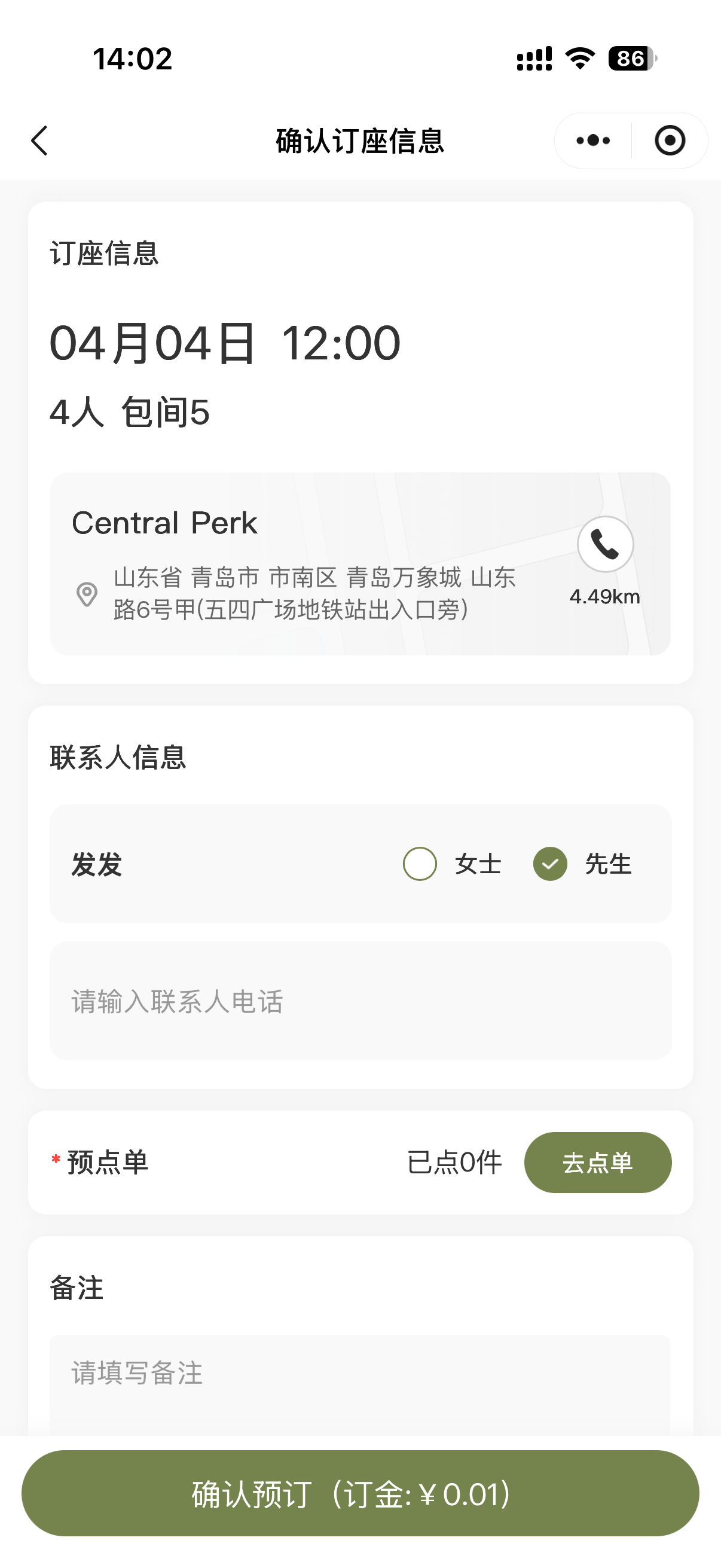 小程序预订及预点示意图: