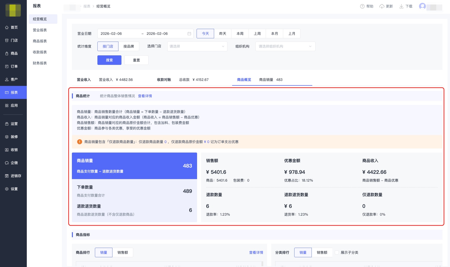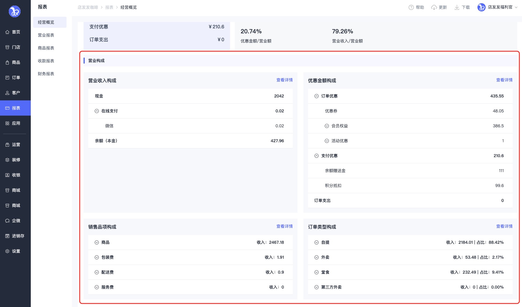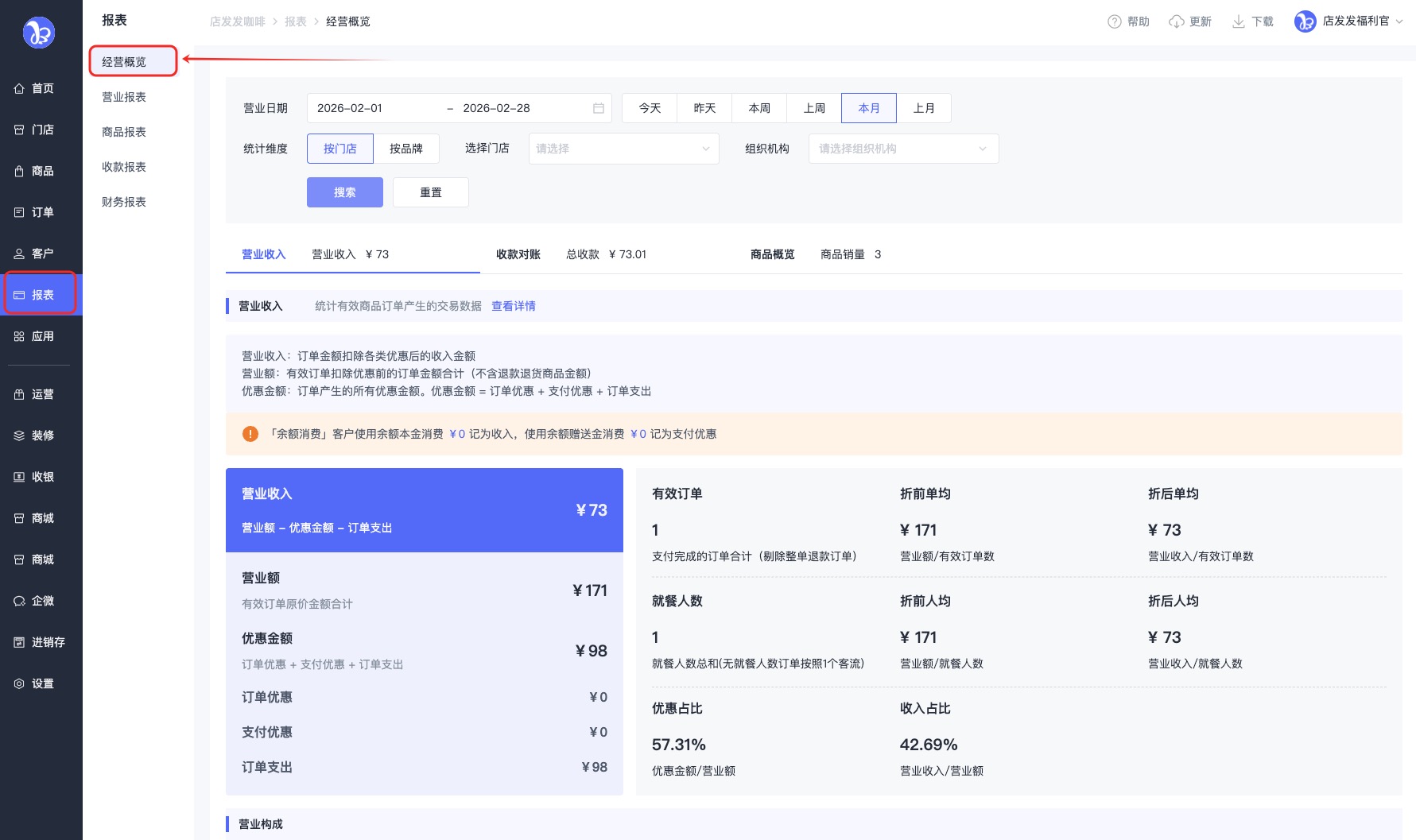 后台路径:店发发品牌后台 - 报表 - 经营概览