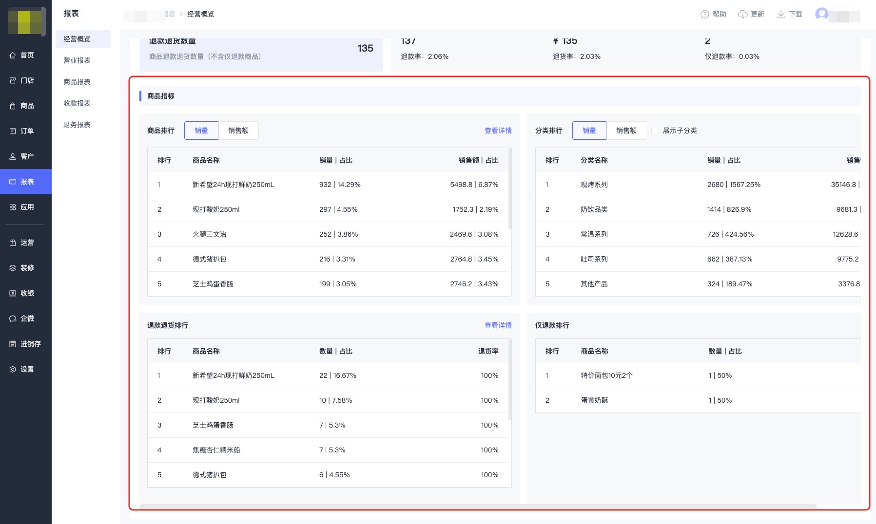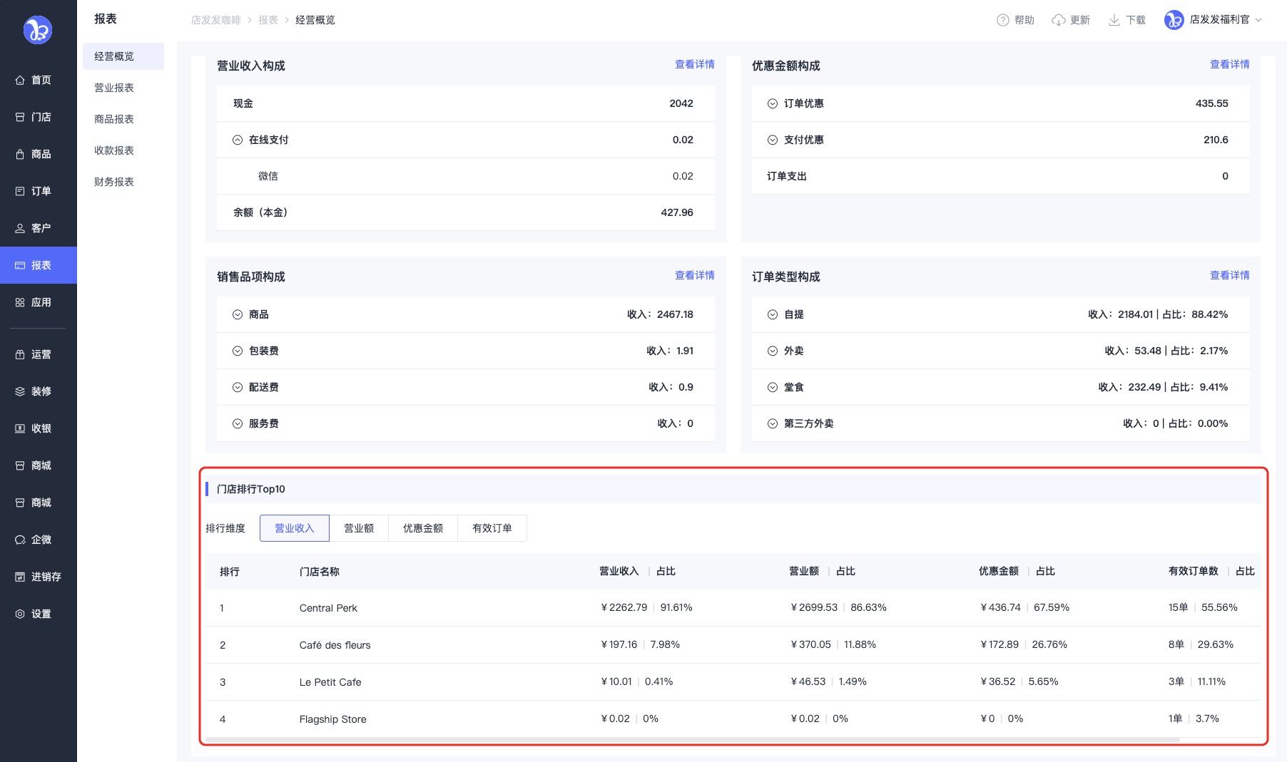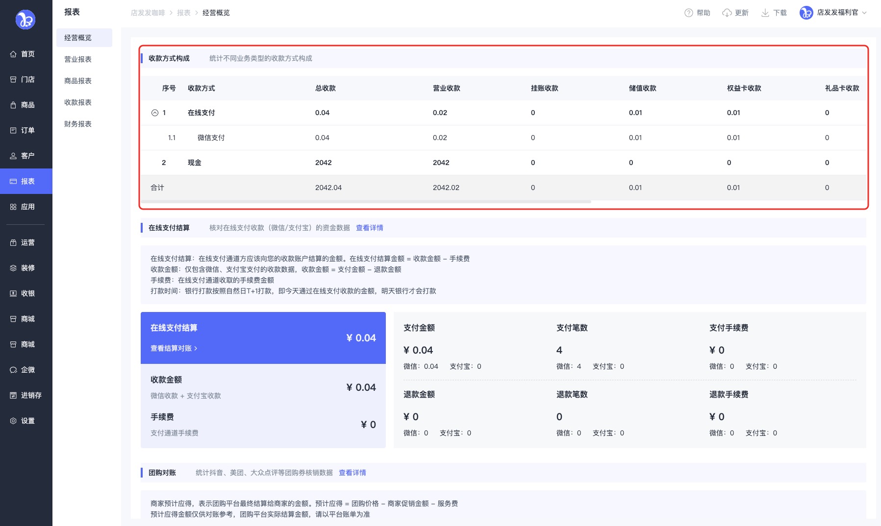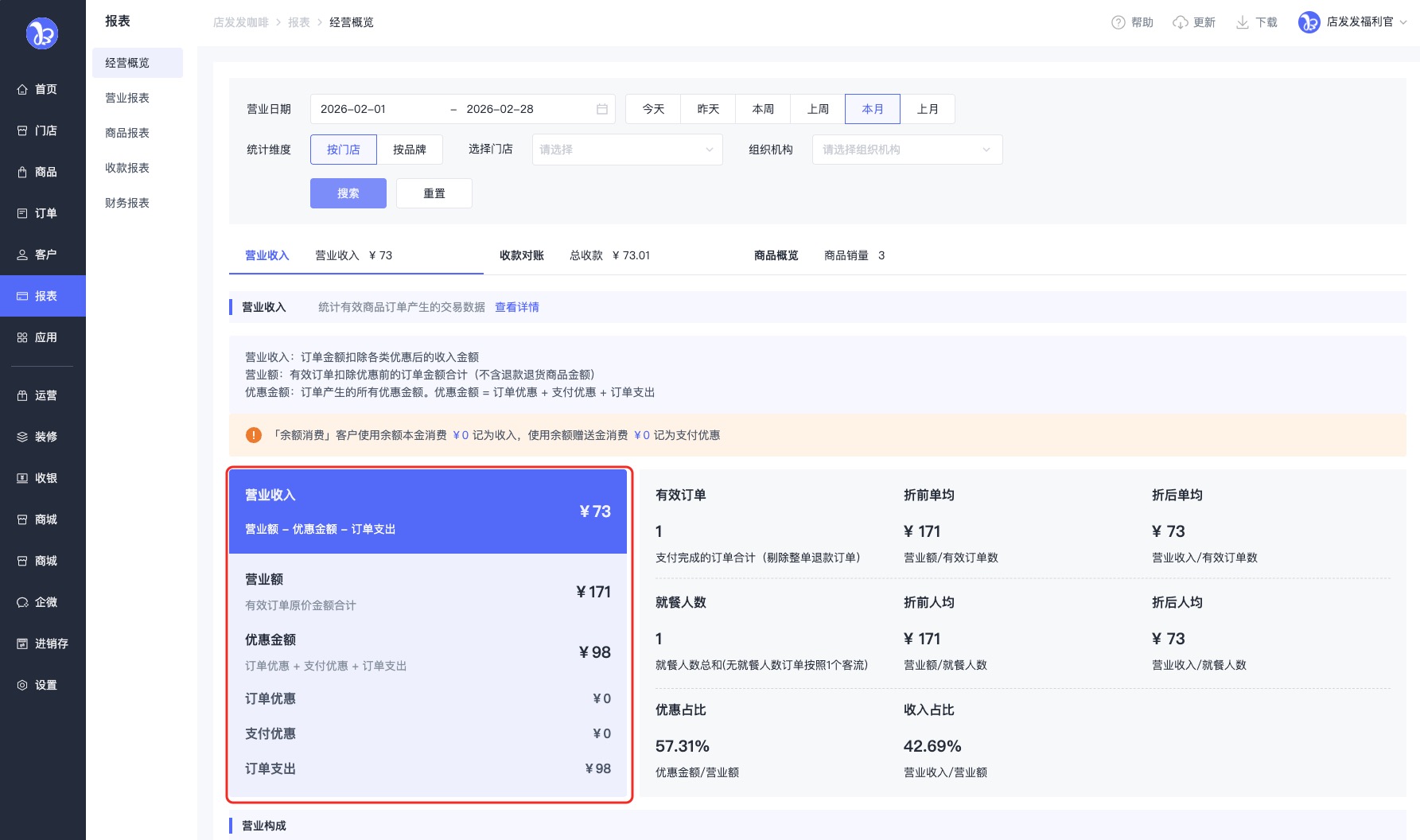 后台路径:店发发品牌后台 - 报表 - 经营概览