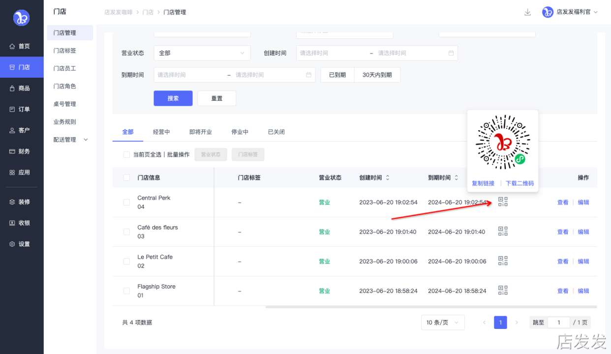 门店管理:店发发品牌后台 - 门店 - 门店管理
