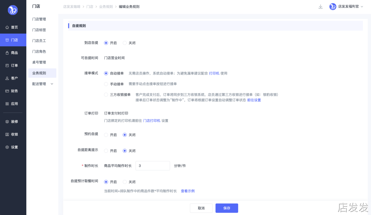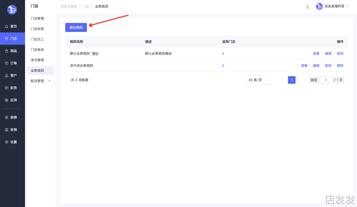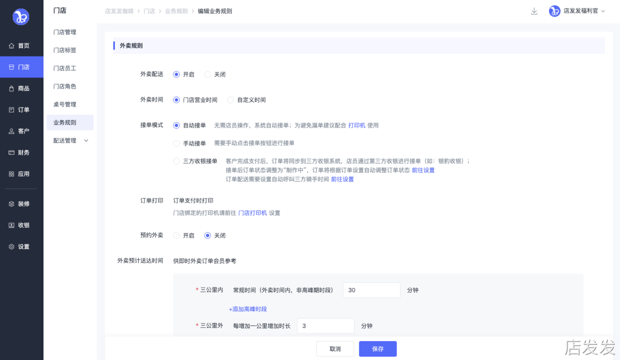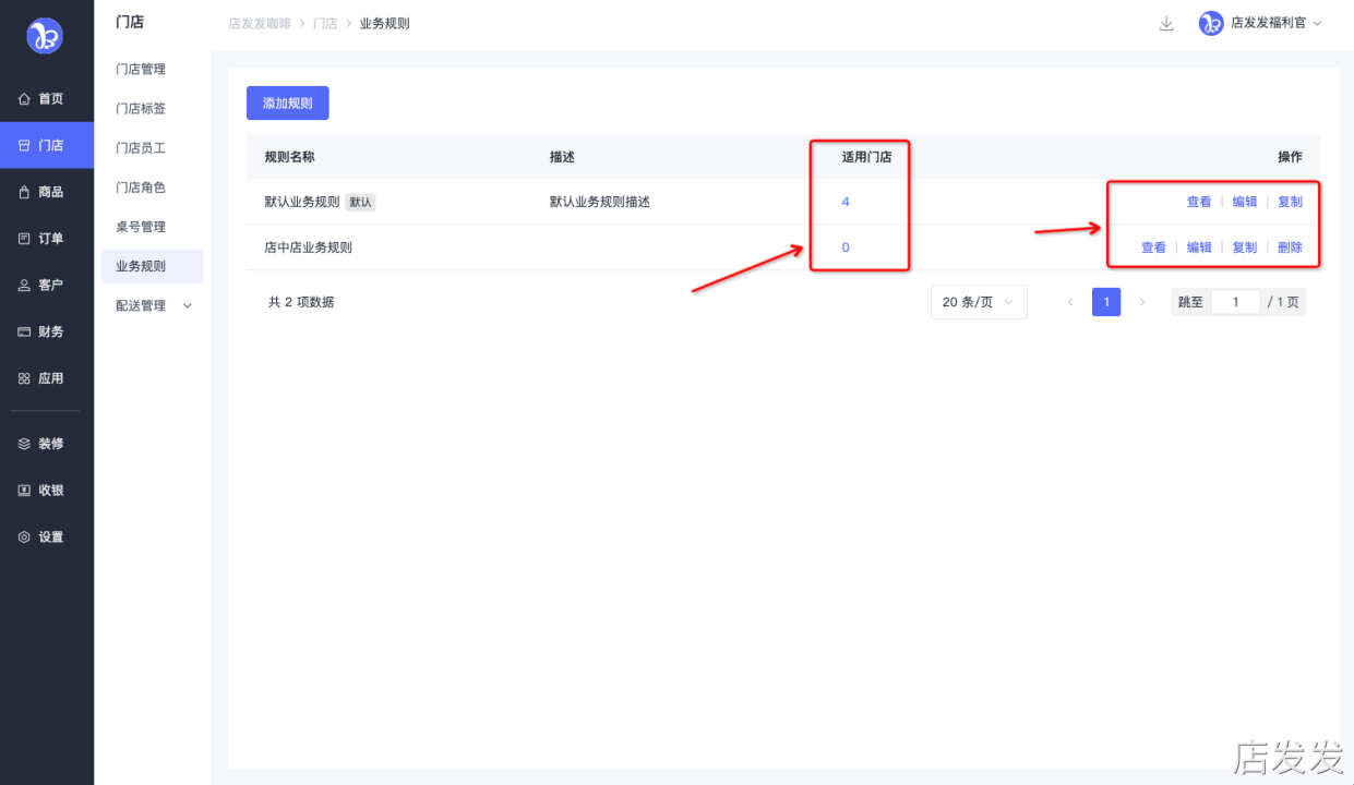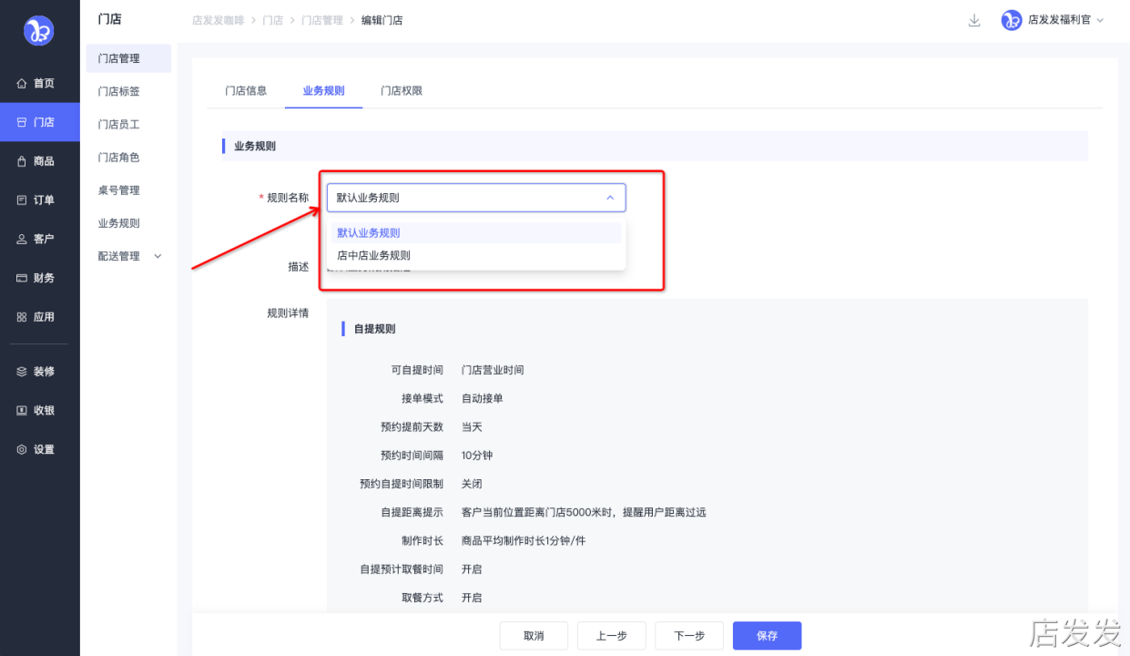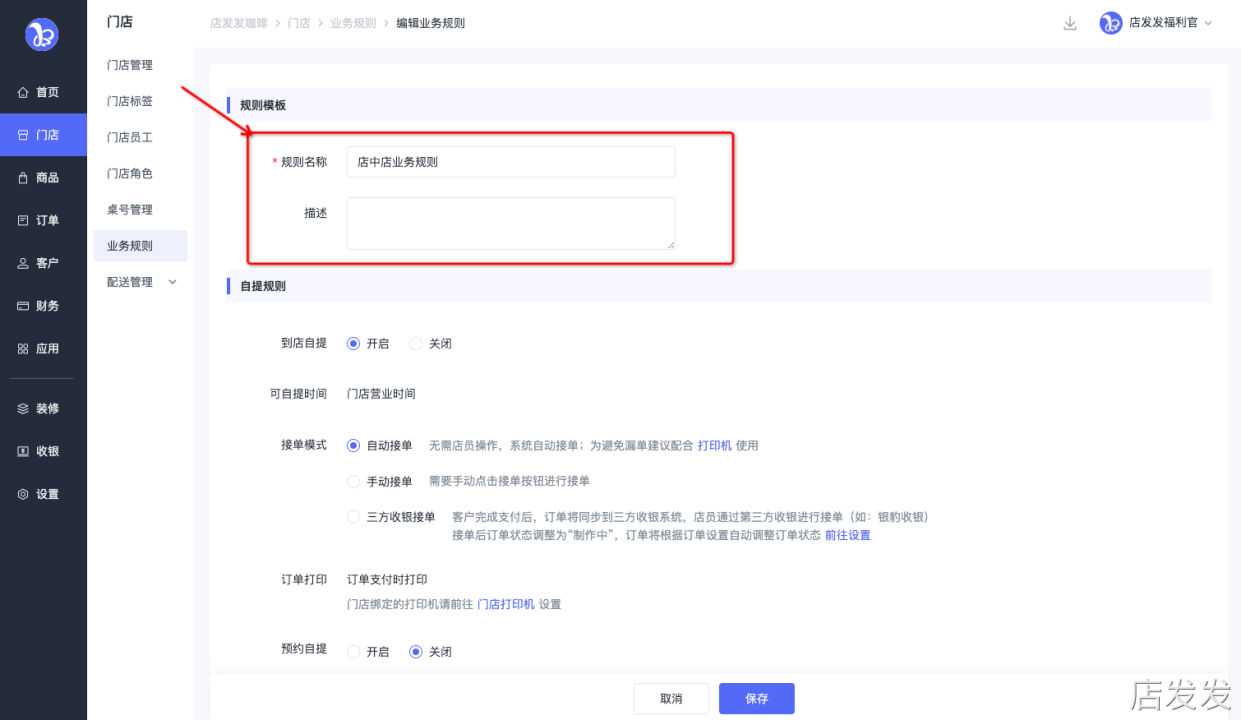 业务规则:店发发品牌后台 - 门店 - 业务规则