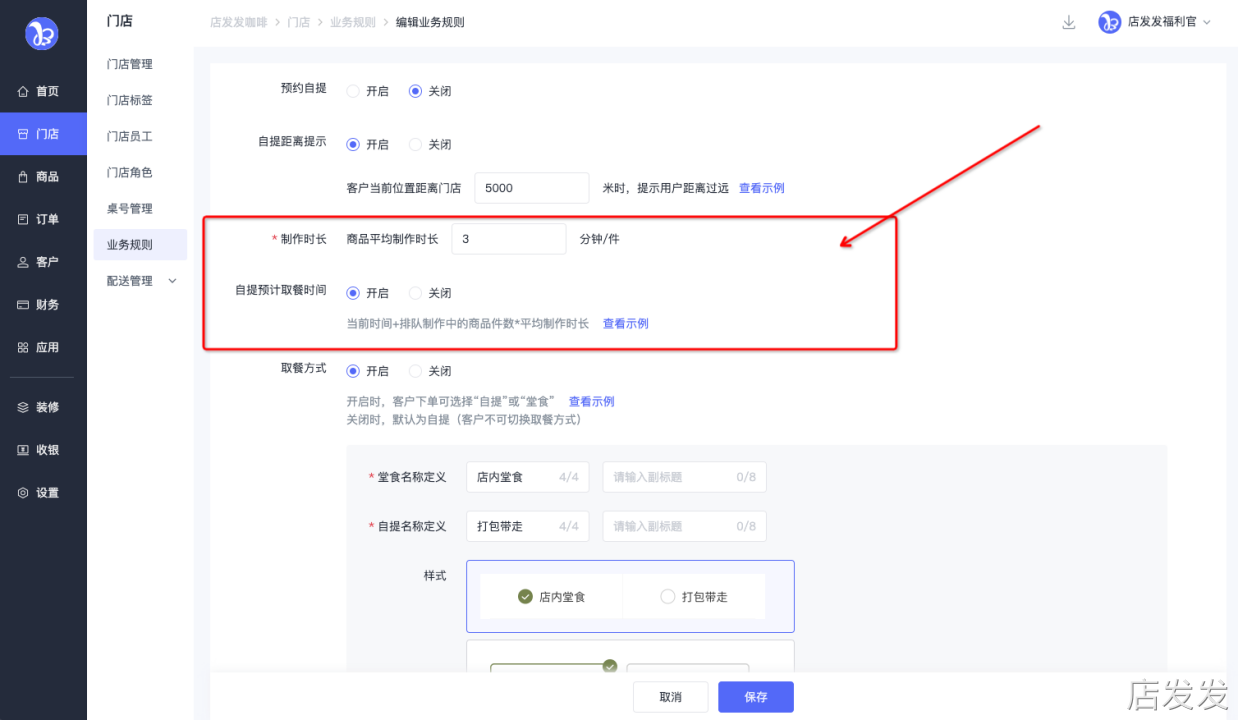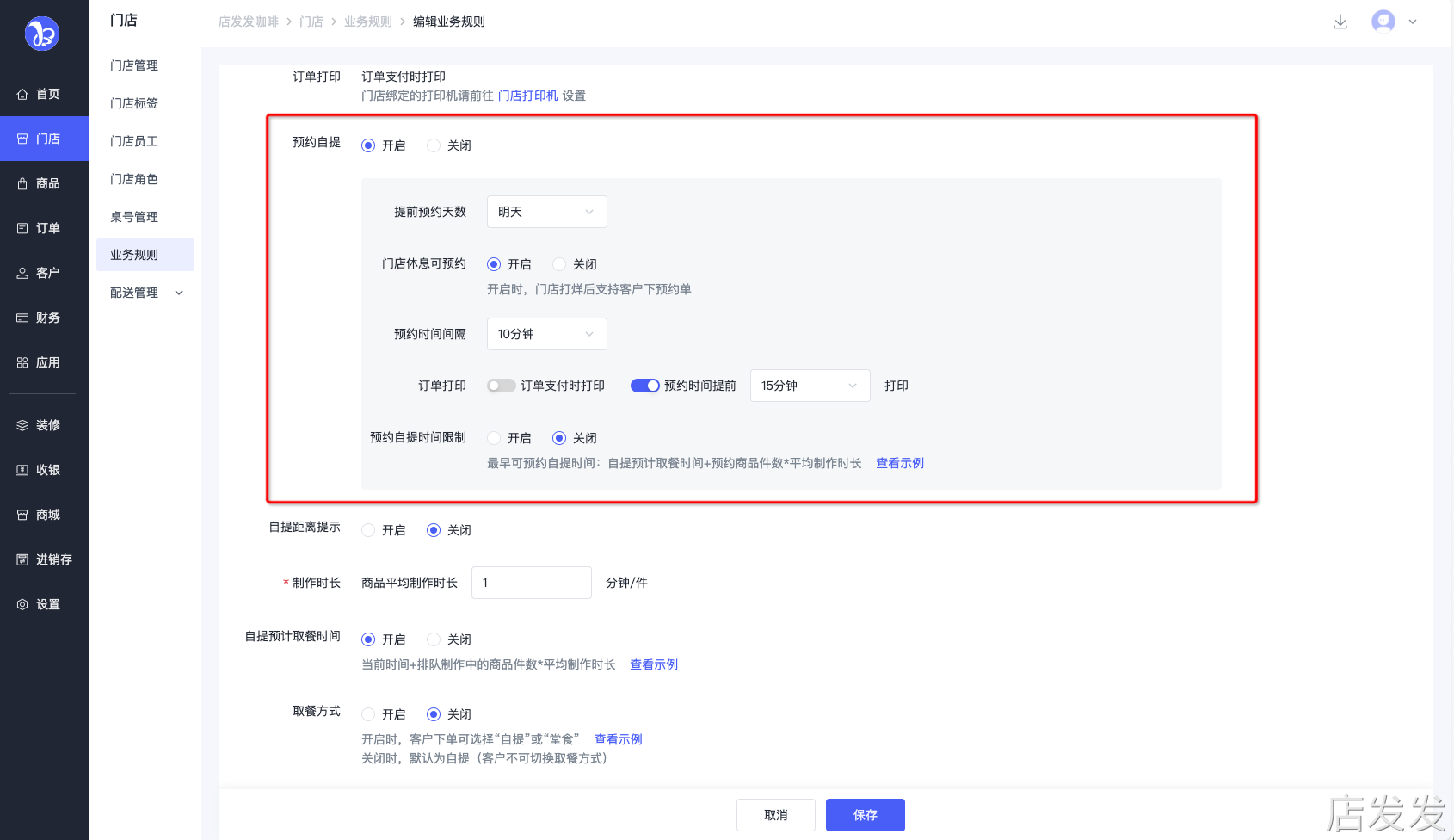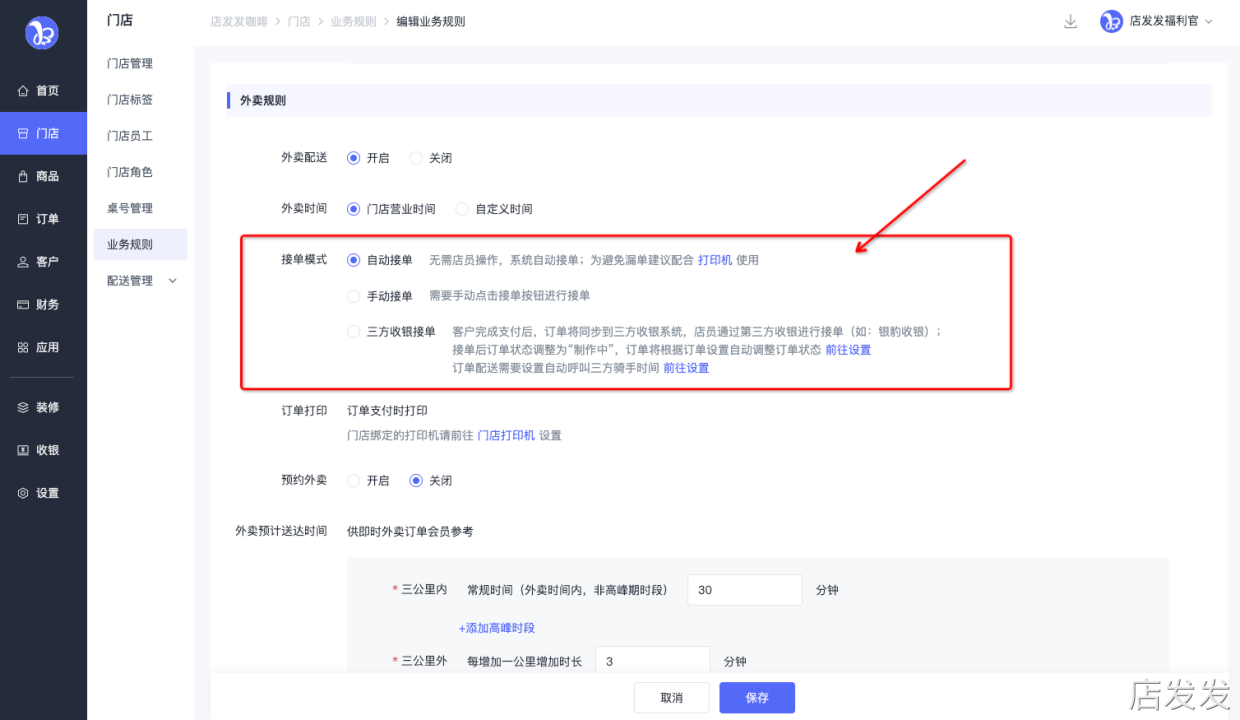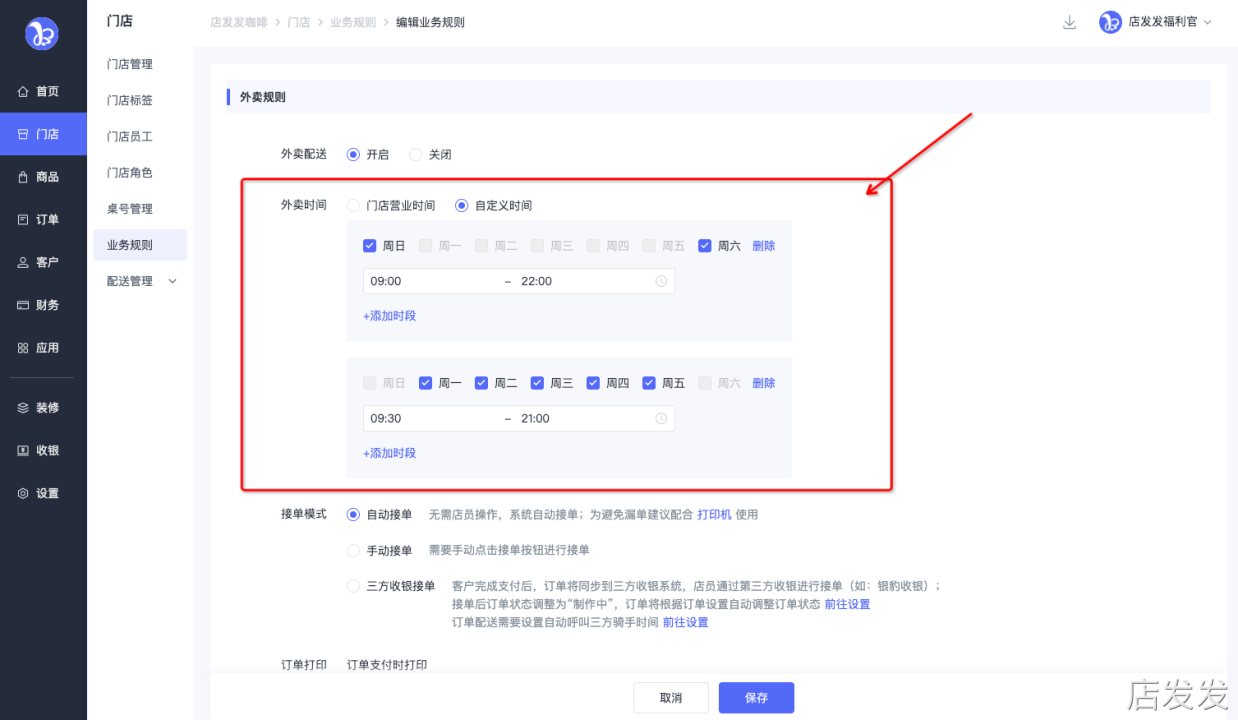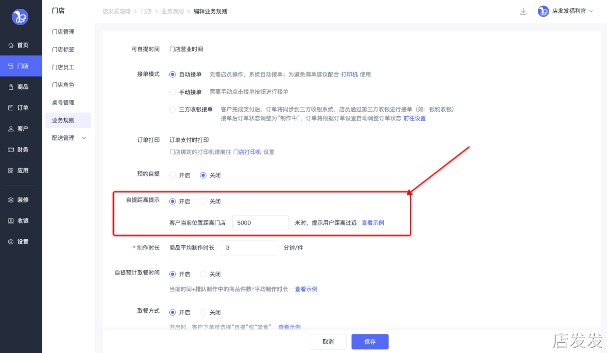 业务规则:店发发品牌后台 - 门店 - 业务规则