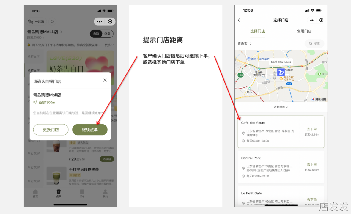 开启“自提距离提示”后,客户在小程序进入门店点餐页面时,如果距离超出配置范围,展示当前门店位置信息,防止客户下错订单;