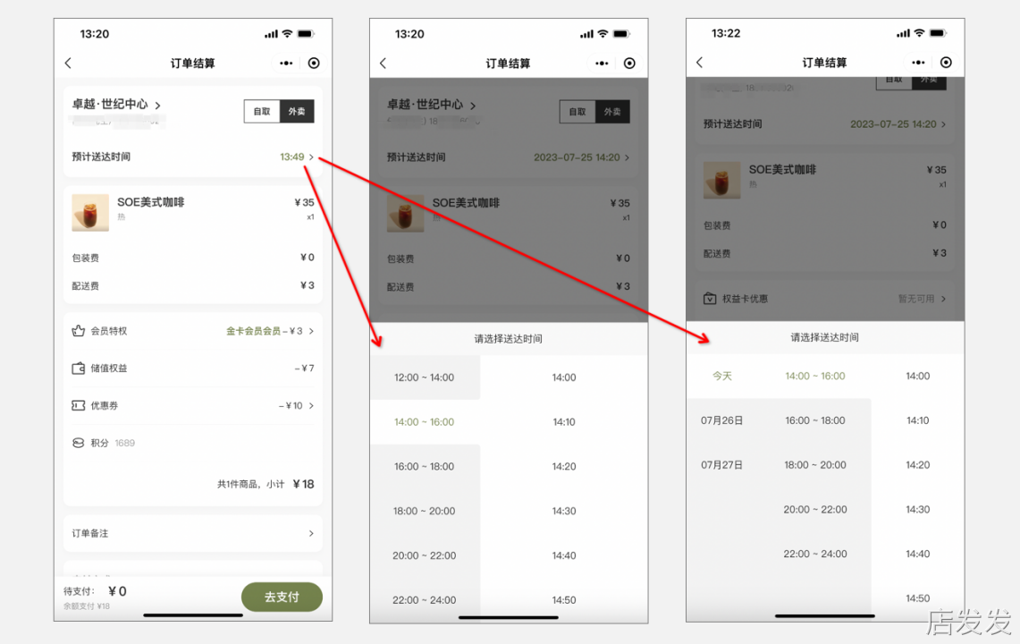 开启“预约外卖”后,客户在小程序下单时,可选送达时间