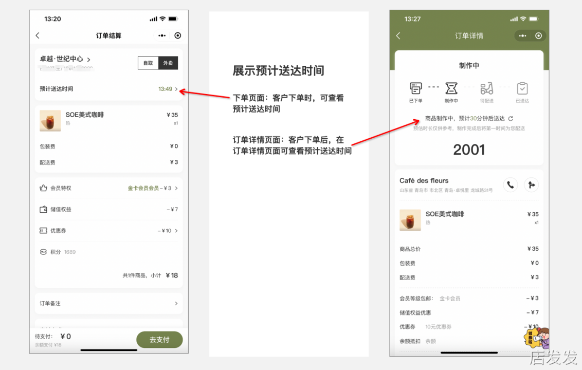根据查配置的距离和配送时间,在小程序端展示预计送达时间;