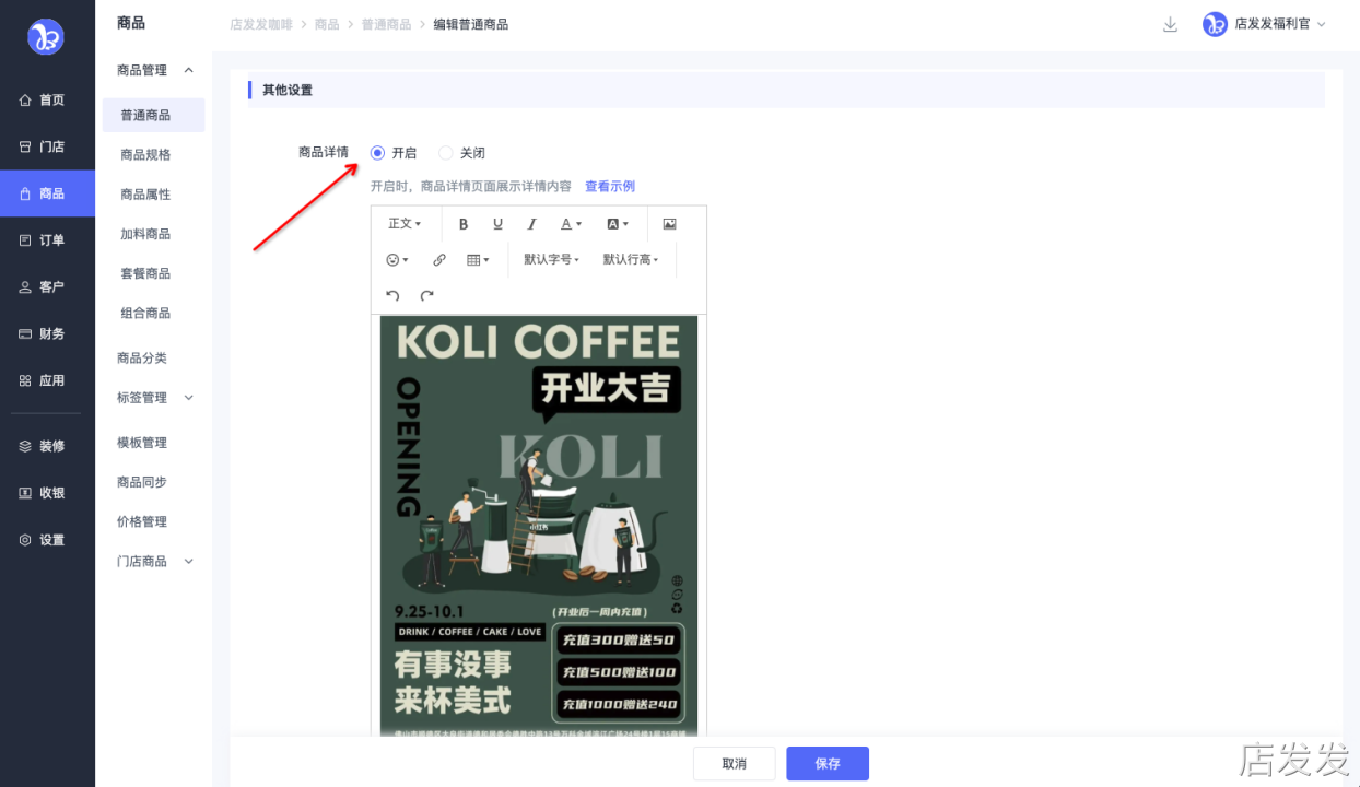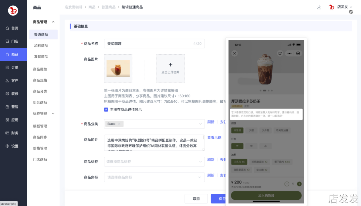 设置商品名称,图片,分类,简介,标签,角标等信息