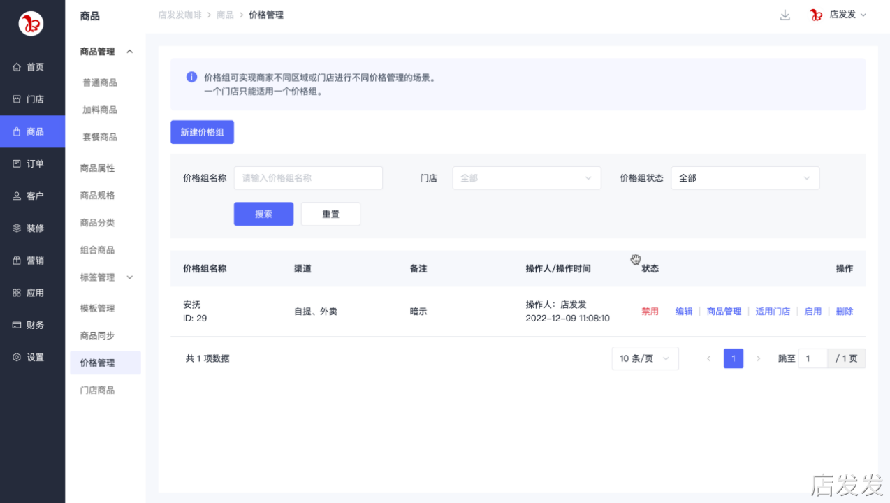 商品价格:门店出售的商品价格默认为商品所属价格组价格。