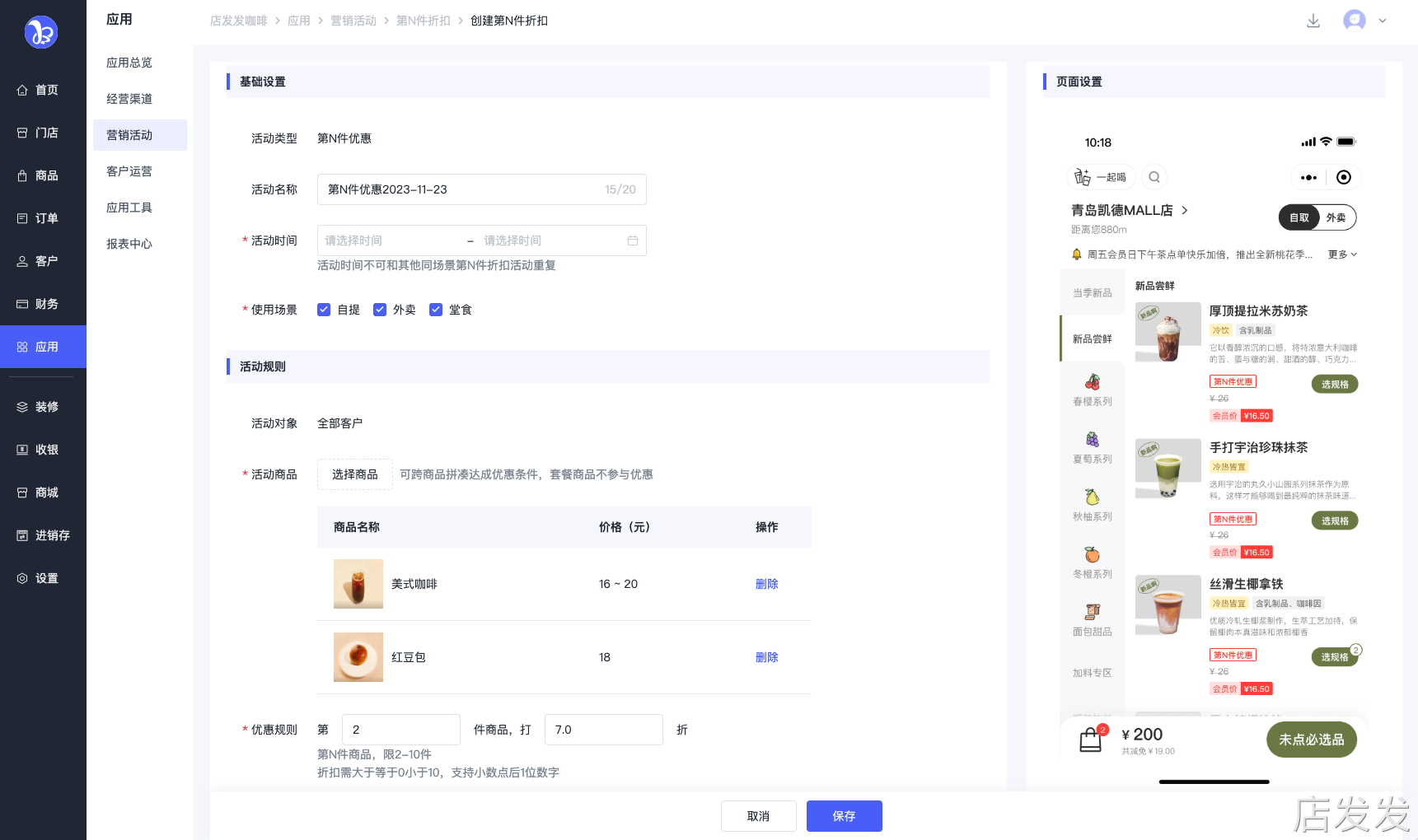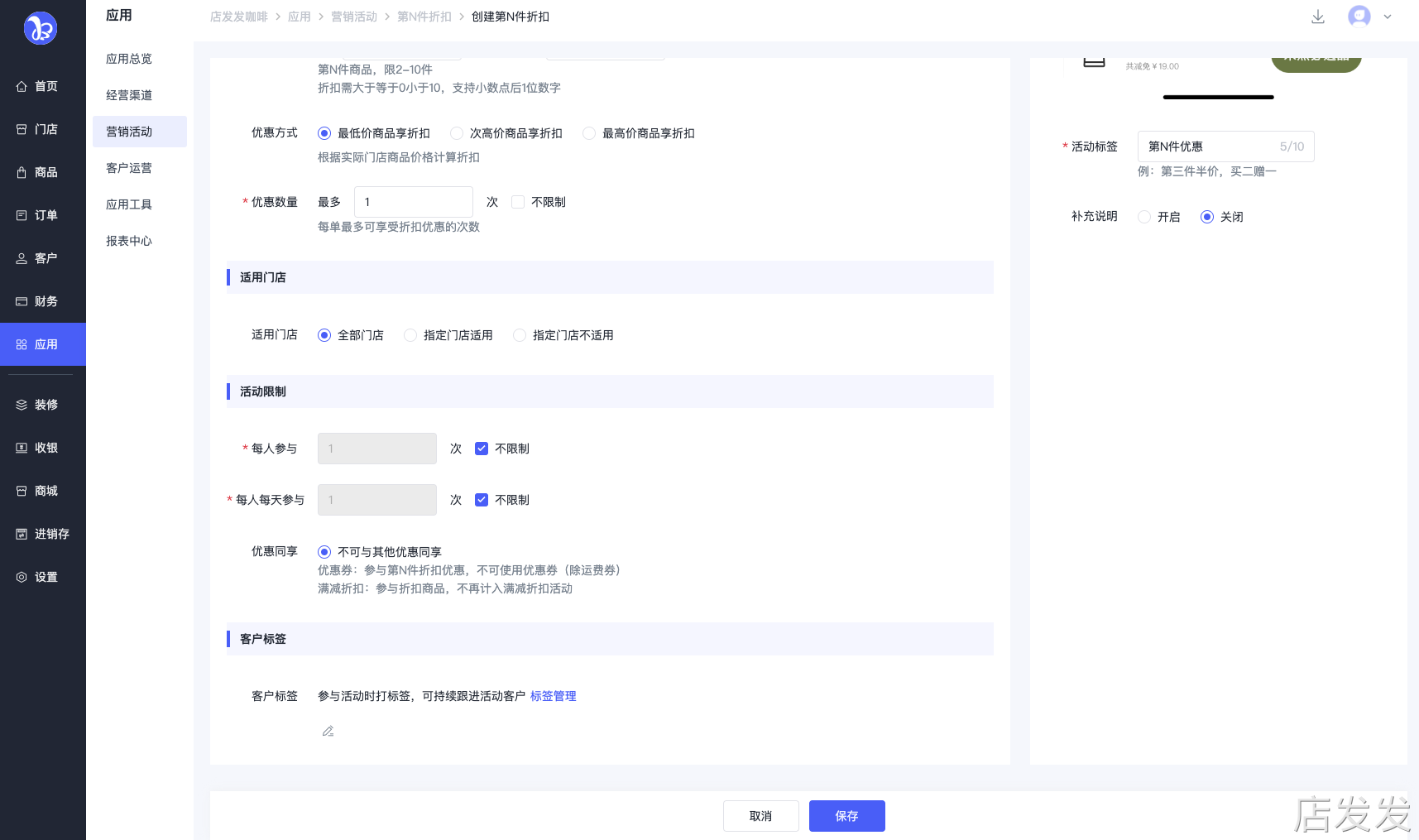 店发发品牌后台- 应用 - 营销活动 - 第N件折扣