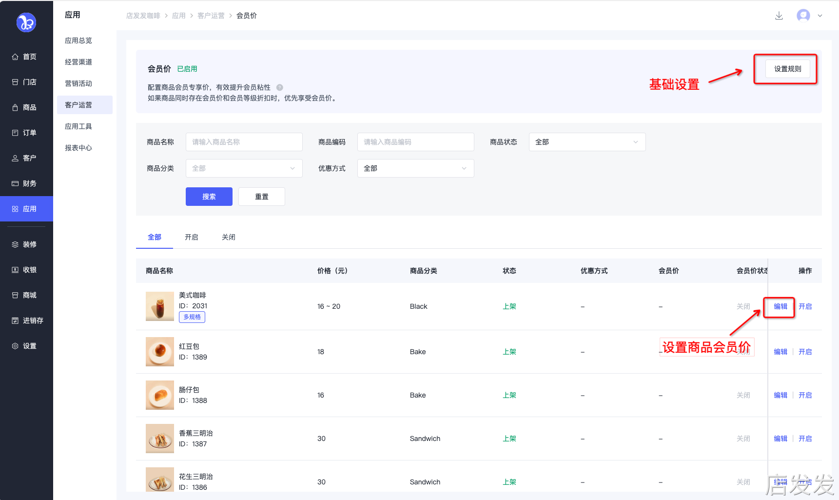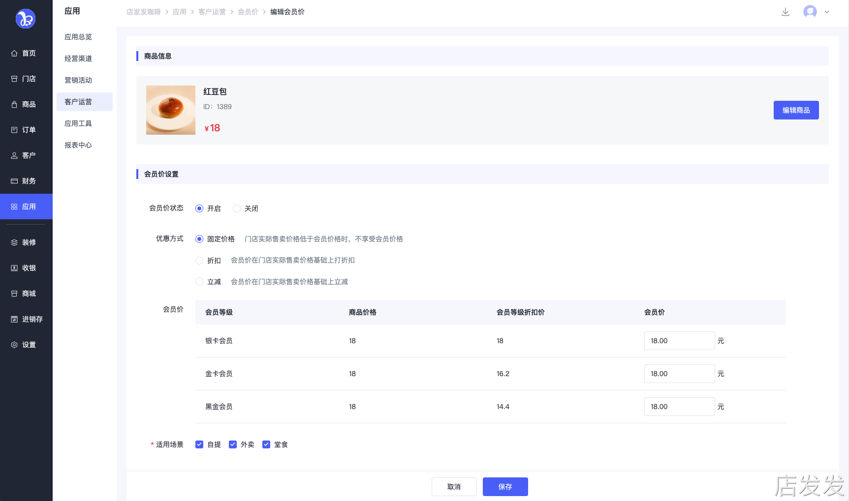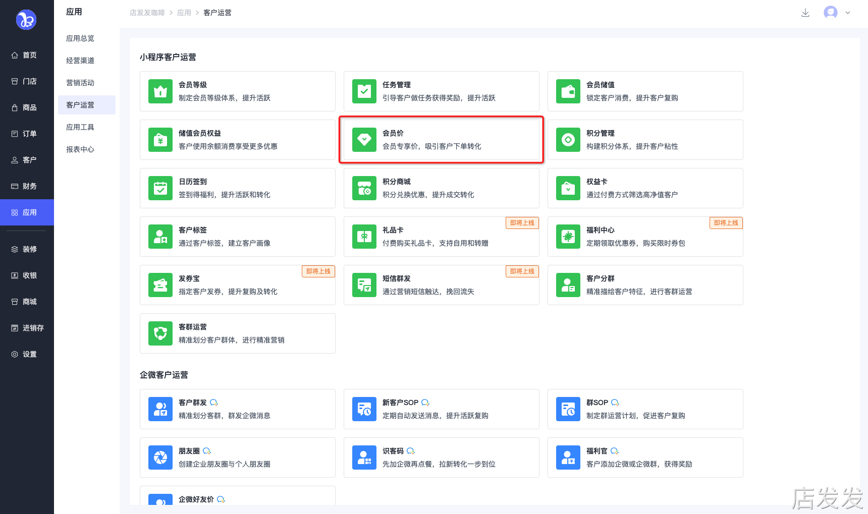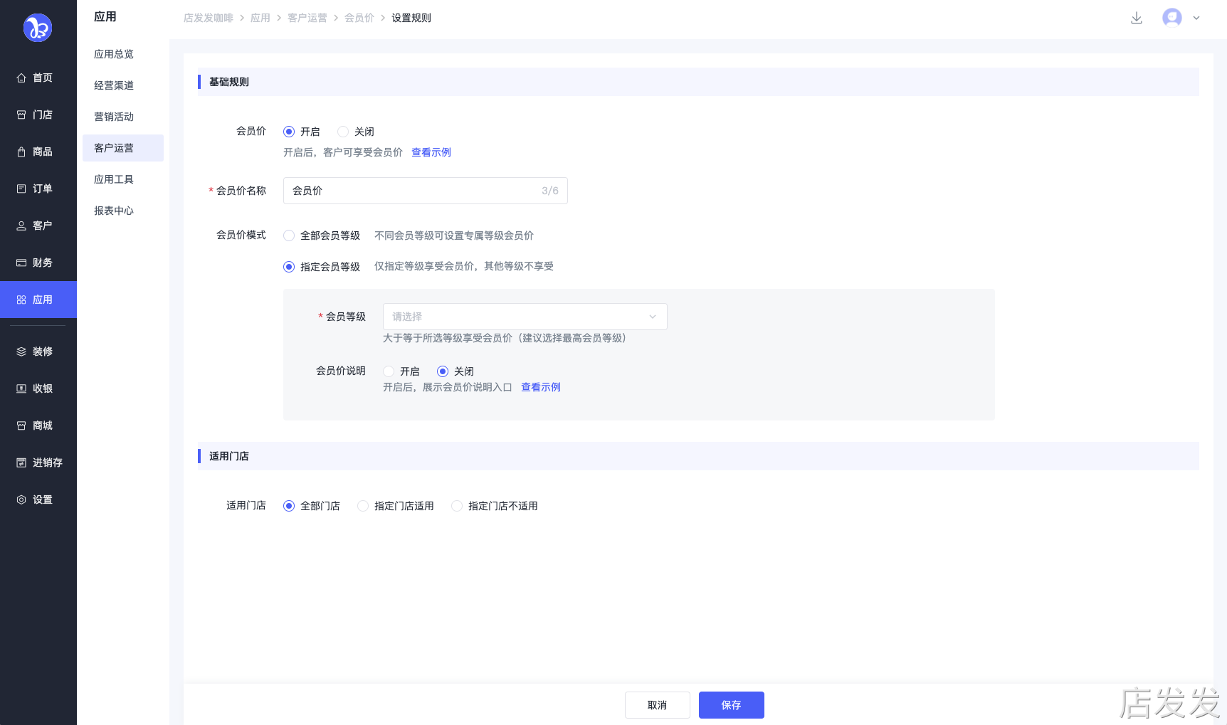 店发发品牌后台- 应用 - 客户运营 - 会员价