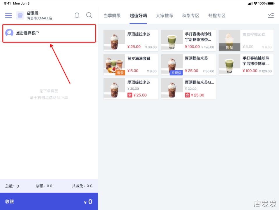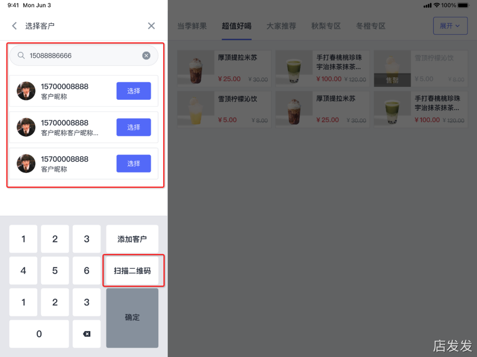 选择会员:【搜索会员】-【选择会员】-【选择商品/下单】