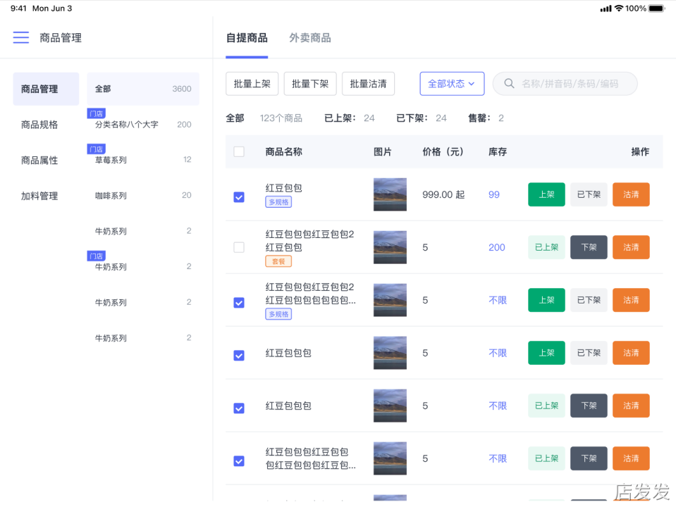 系统化管理门店商品信息,包括商品状态、商品库存等