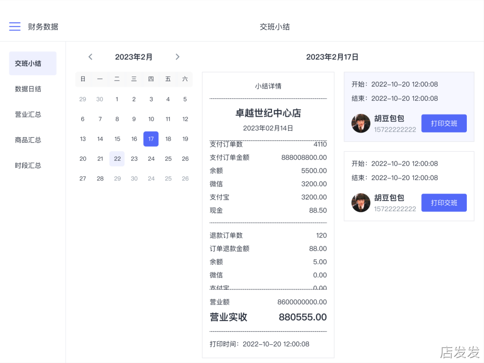 注:交班小结仅包含收银下单数据,不包含小程序等其他订单来源数据